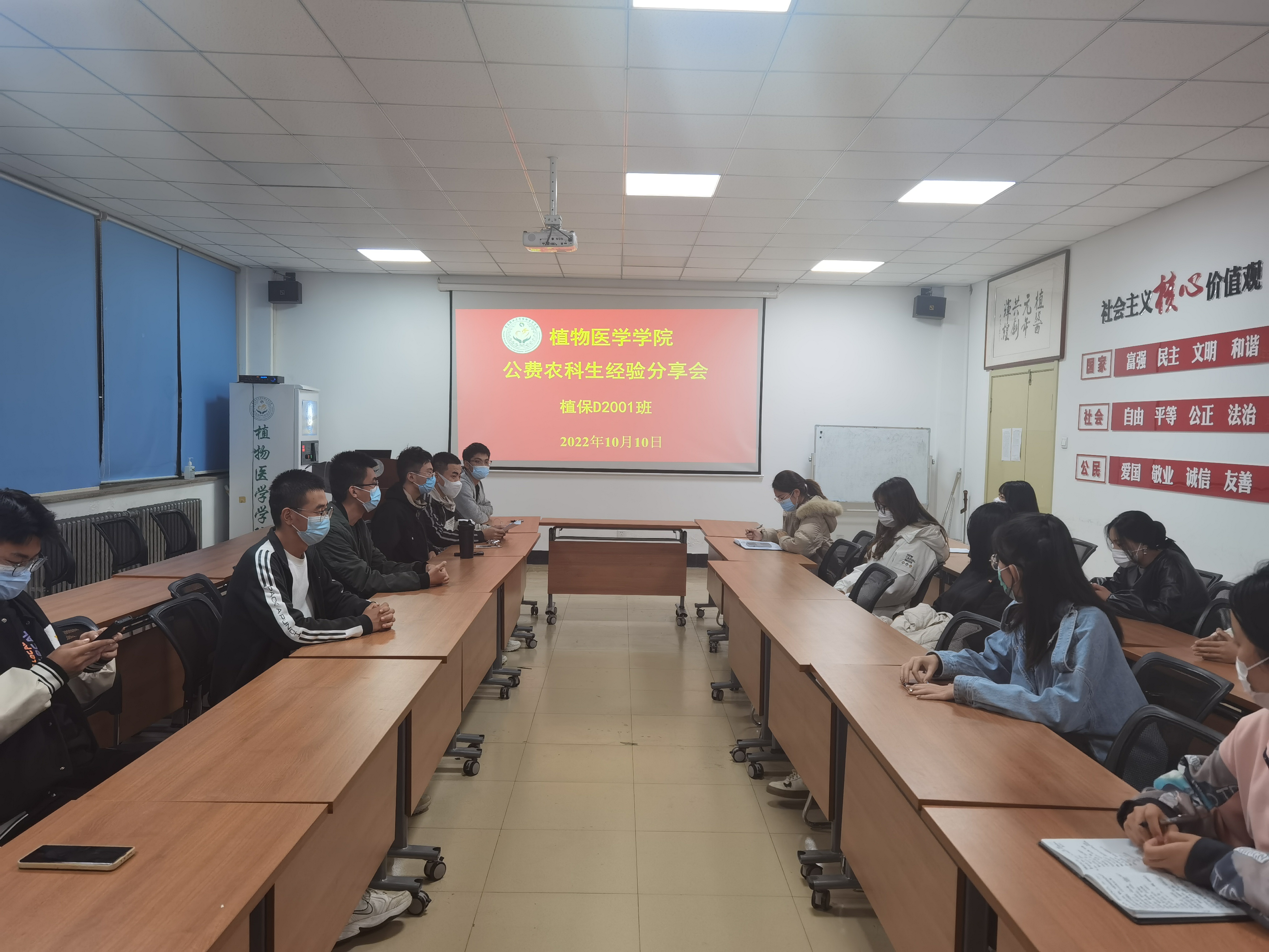 马忠旭指出,做好基层工作要注意培养技术能力、人际交往能力、和文字工作能力。身为植物保护专业技术人才,掌握植保知识是基础,基层工作离不开专业知识。杨新宇强调,同学们要重视实习机会,认真学好专业知识,将专业知识与生产实践相结合,为未来踏上工作岗位做准备。王彦力鼓励同学们积极参加单位实习,提前了解基层工作。她表示,基层工作综合性强,需要同学们掌握稿件撰写、宣传、办公技能等多项能力。黄衡表示,要做好从员工到基层工作者身份的转变,刚开始工作时要多看、多学,注意细节,基层工作少不了和群众沟通,开展工作时一定要耐心、细心。王安宁建议同学们多多关注学习关于大田作物的病虫害以及综合管理的知识,提前关注自己定向地区的农业农村局公众号,了解当地情况。