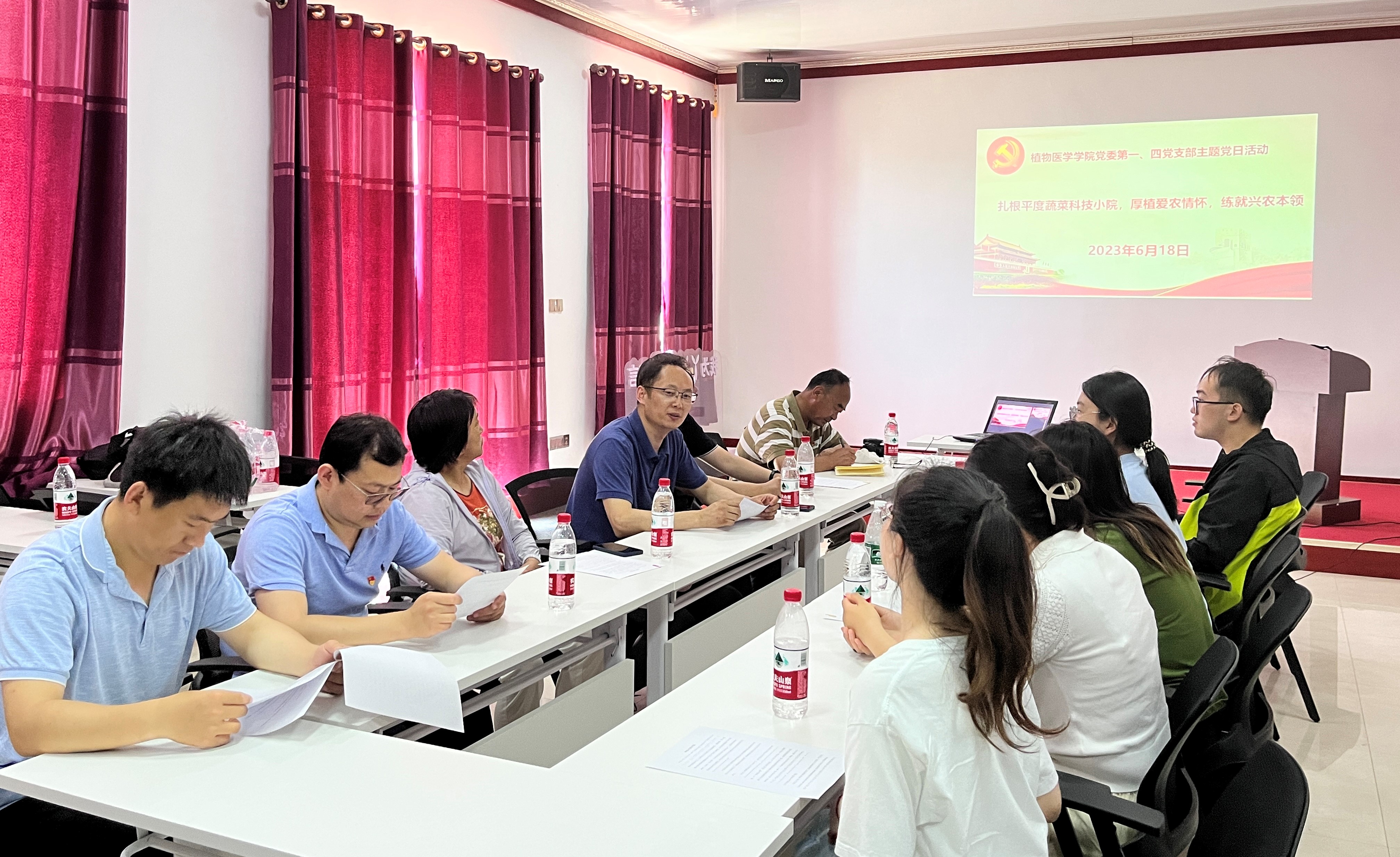 主题党日活动在平度蔬菜科技小院“田间课堂”举行。全体党员学习了习近平总书记给中国农业大学科技小院的员工回信精神,纷纷表示要牢记习近平总书记谆谆教诲,坚定理想信念,要“自找苦吃”,志存高远、脚踏实地,把课堂学习和乡村实践紧密结合起来,做到知行合一。