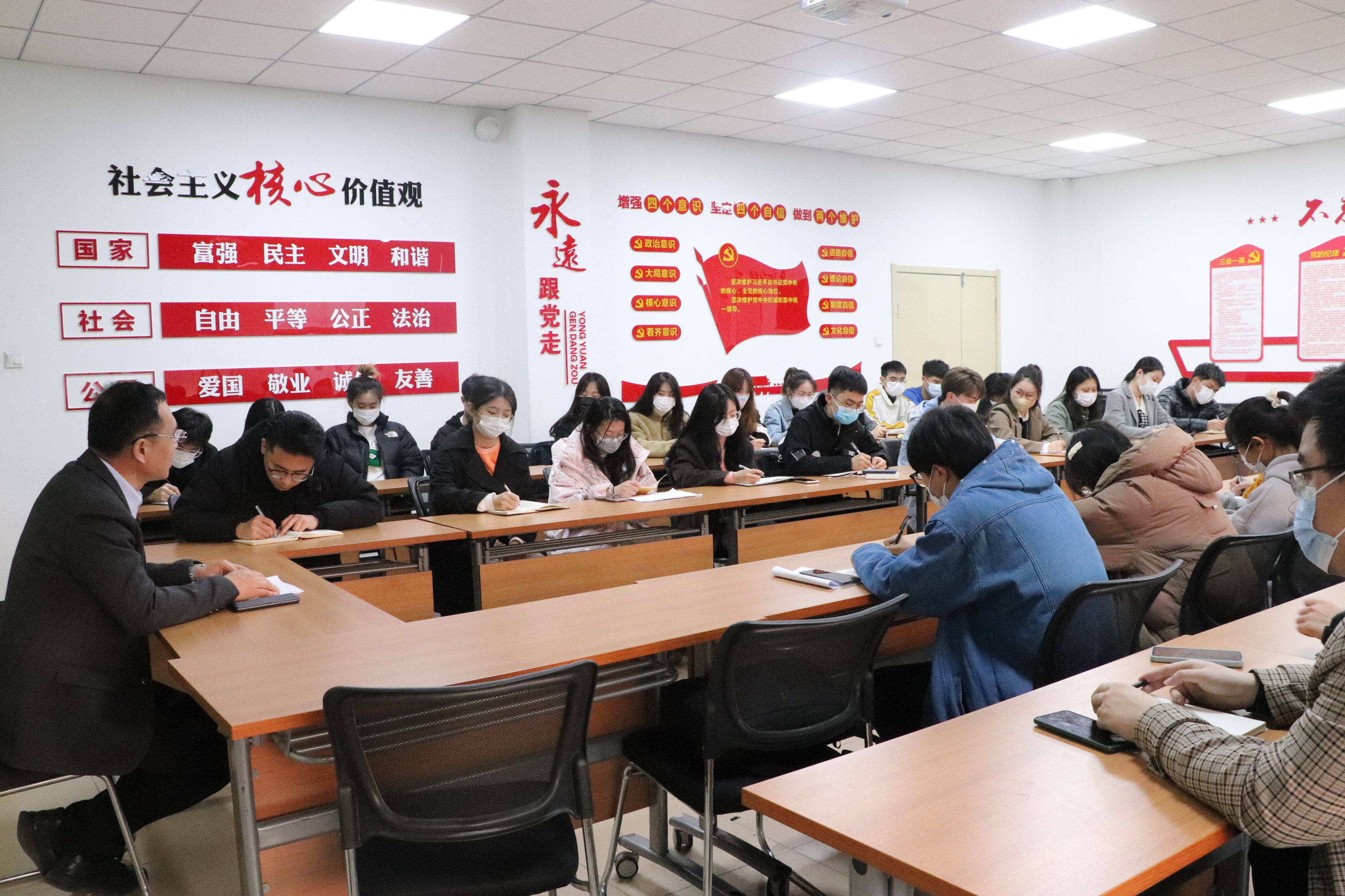课上,韩强向同学们讲解了当前国内国际形势,讲到,当前国际形势不太平、不稳定,国家仍然处于新的战略机遇期。在《中共中央关于制定国民经济和社会发展第十四个五年规划和二〇三五年远景目标的建议》文件中提到当前我国的目标是贯彻新发展理念,立足新发展阶段,构建新发展格局,以国内大循环为主体,国内国际双循环相互促进。韩强指出,目前正值公司面临高质量发展的关键时期,需要全院师生共同努力提升教学质量、学科水平,实现公司高水平建设,申报上植物保护一级学科博士点。他对员工干部提出要求,要德智体美劳全面发展,充分锻炼自己,要有事业心、责任感、培养自身的奉献精神和大局意识。