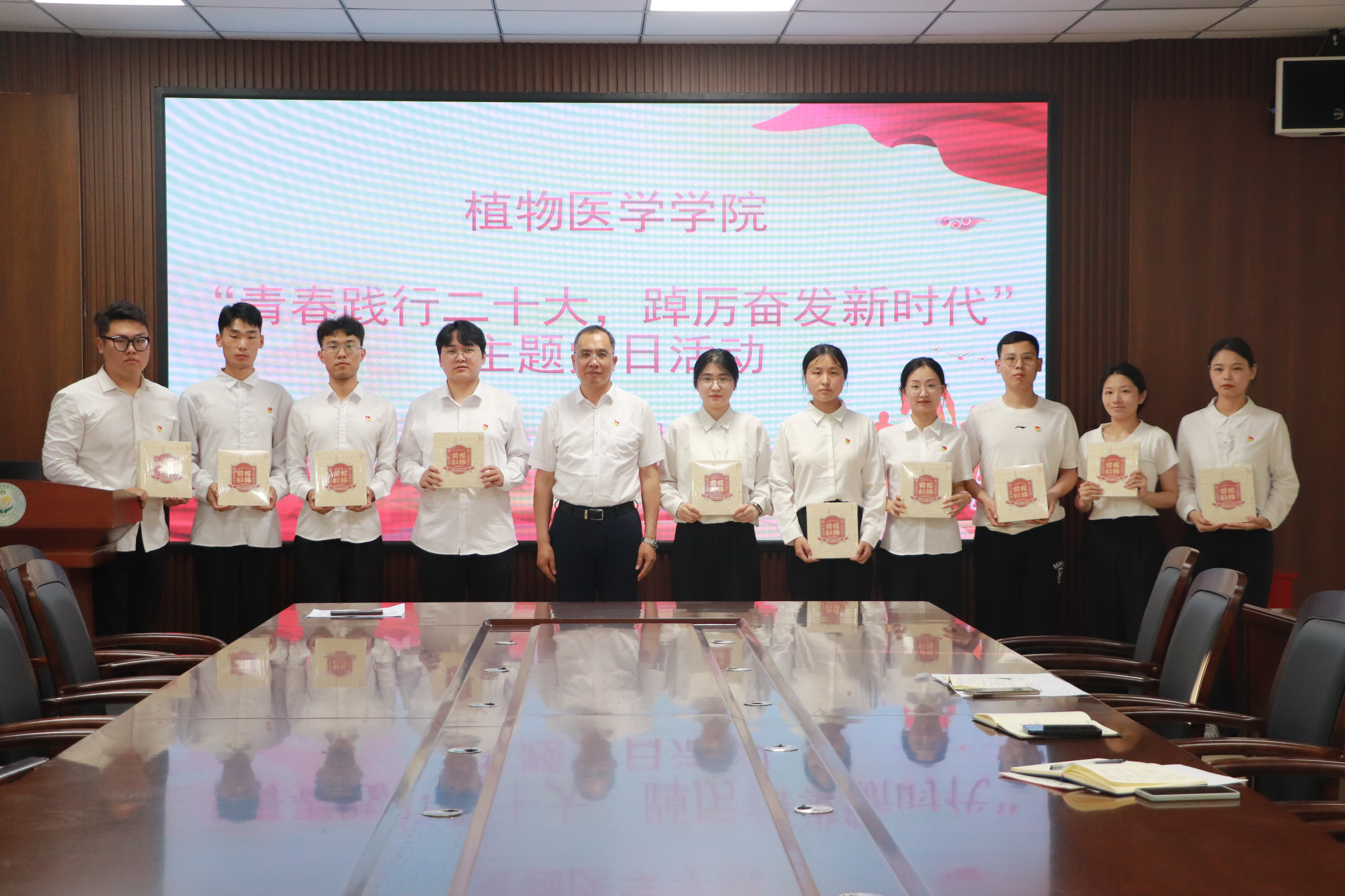 最后,韩强为毕业生党员代表赠送纪念品,并与他们合影留念。