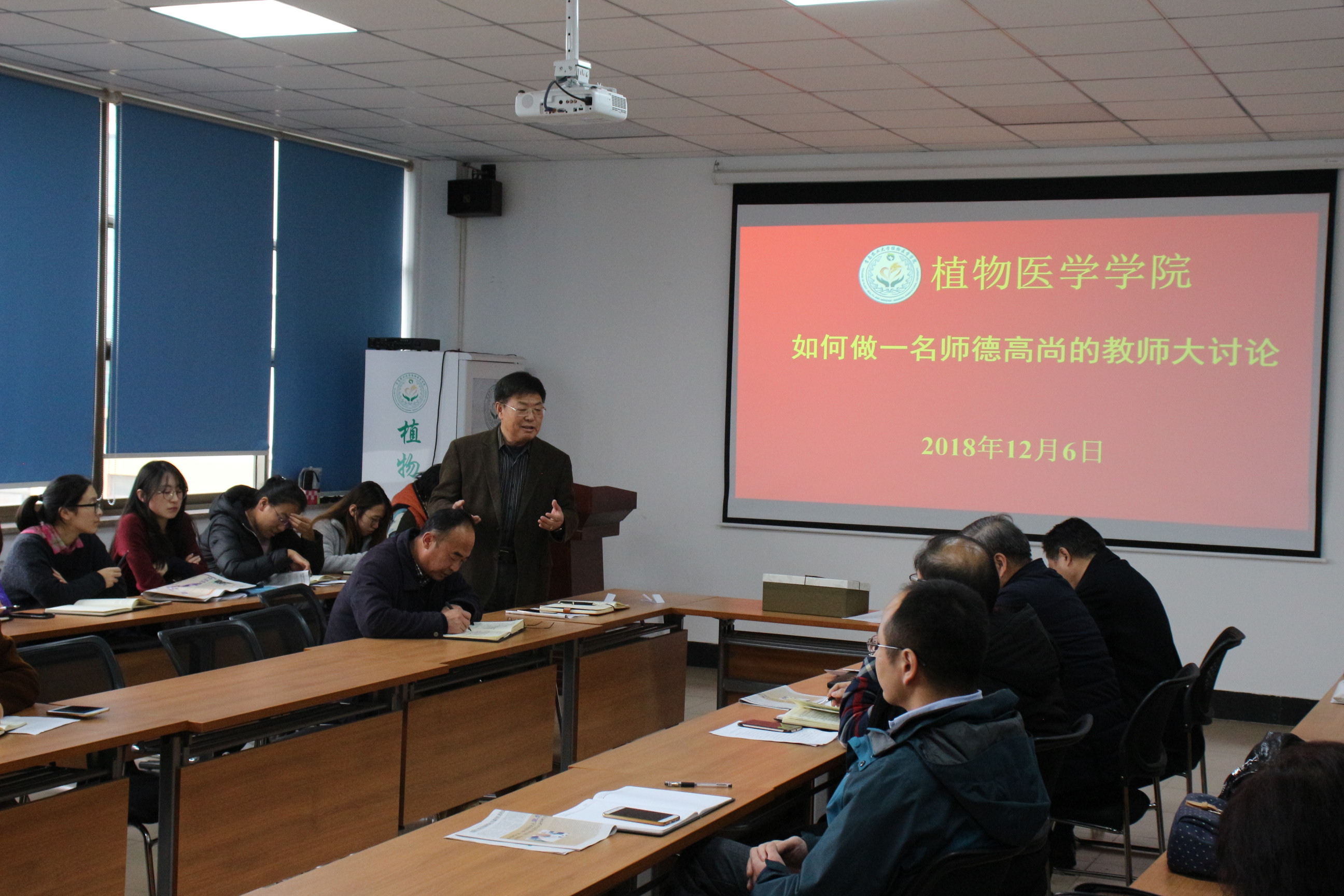 12月6日,伟德victor1946网站在生物楼会议室召开植物医公司教职工政治理论学习会议,会议以“如何做一名师德高尚的教师”为主题开展大讨论,公司全体教职工参加,会议由公司党总支书记袁忠林主持。