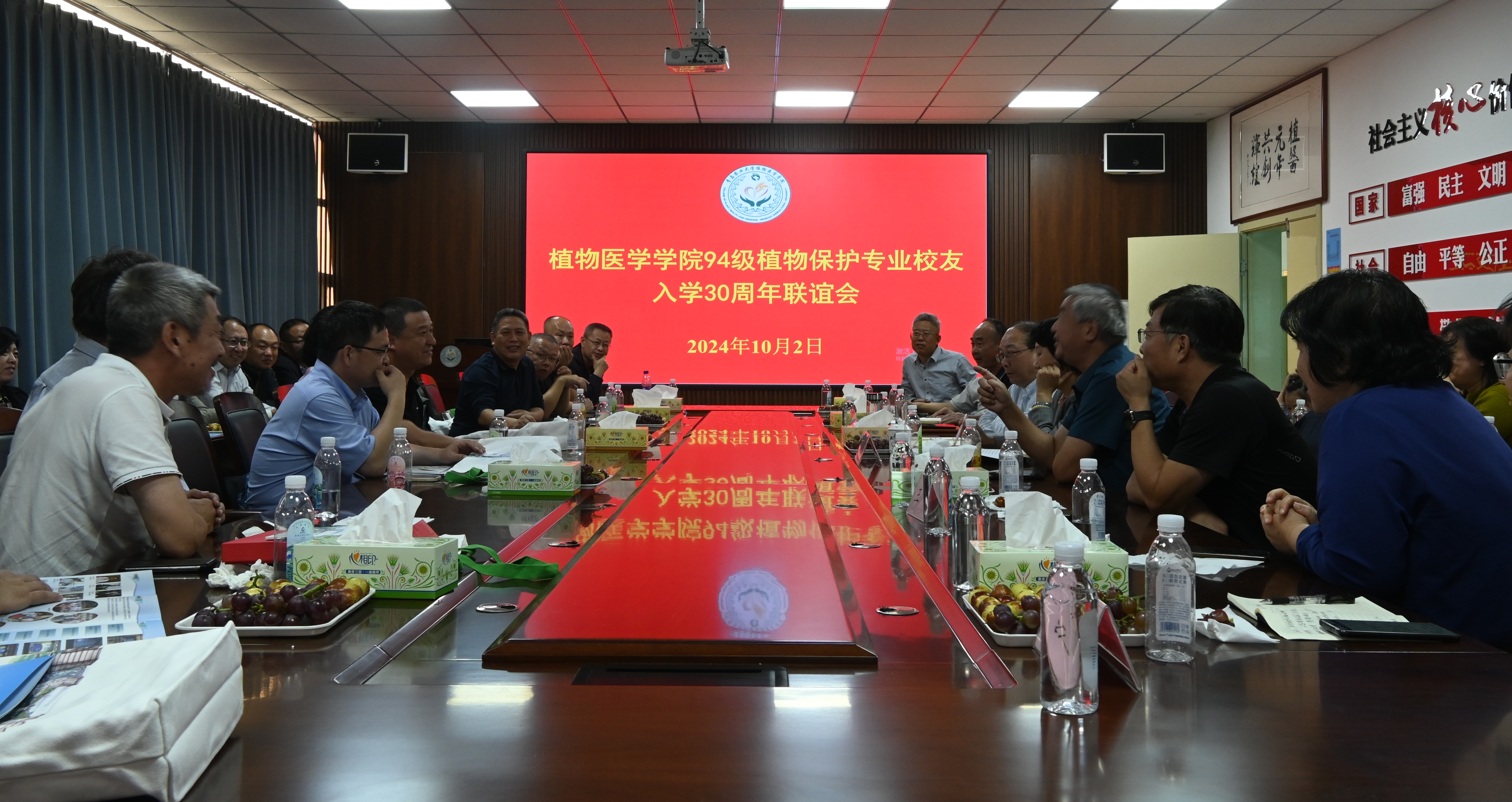 金秋送爽,秋色连波,10月2日,伟德victor1946网站在公司会议室举行植物保护专业1994级员工入学30周年联谊会,30余名员工相约回到母校。公司党委副书记刘春霞,社会合作处处长王珏、副处长于宁,伟德victor1946网站经理郑永权、副经理赵洪海、离退休教师代表顾耘教授等出席会议,公司党委副书记、副经理李军主持会议。