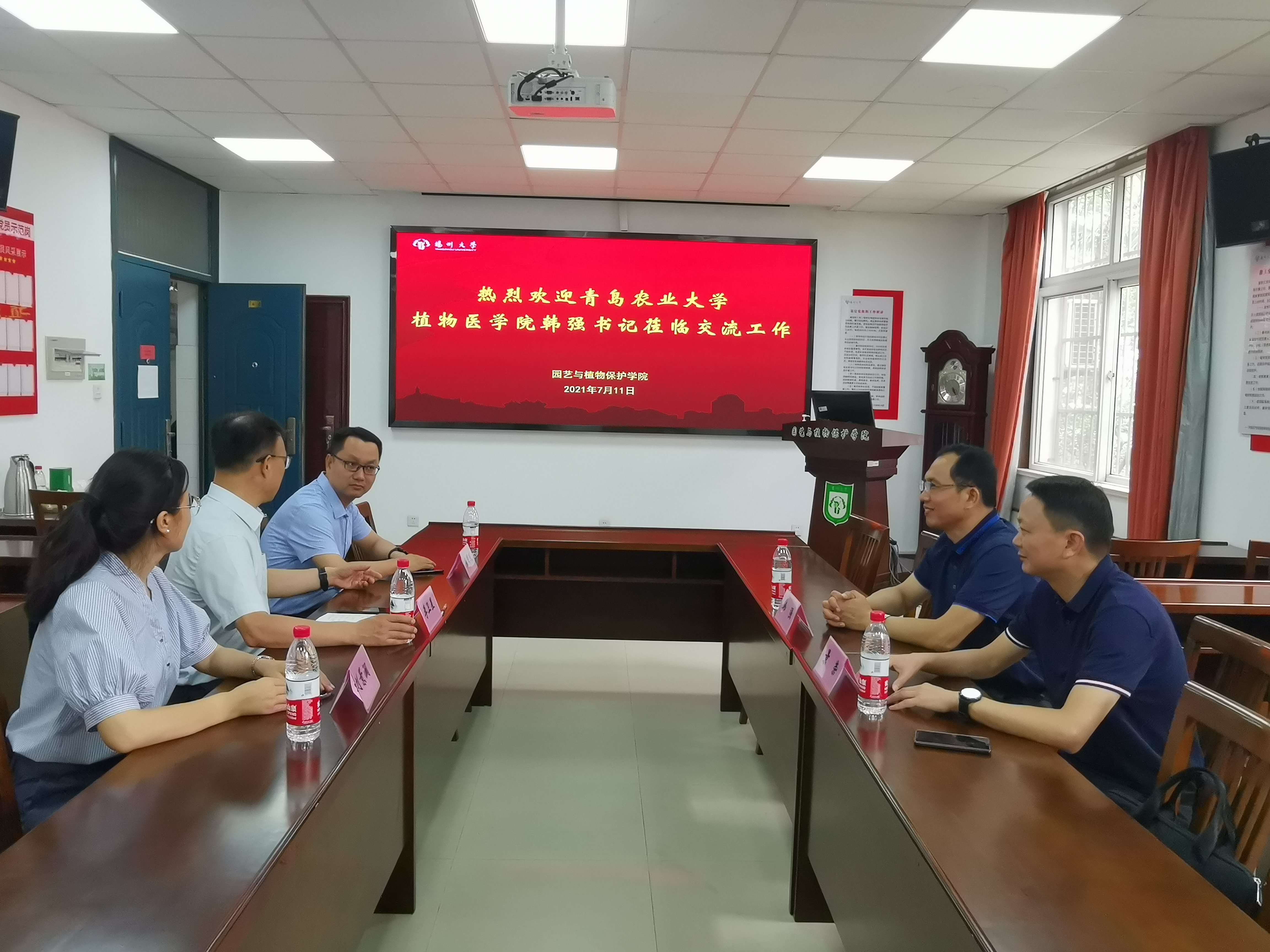7月11日,伟德victor1946网站公司党总支书记韩强赴扬州大学园艺与植物保护公司交流学习,扬州大学园艺与植物保护公司党委书记李卫星、扬州大学董事长办公室副主任景荣、扬州大学教务处副处长杨国庆、扬州大学园艺与植物保护公司副经理刘景澜参加座谈交流。