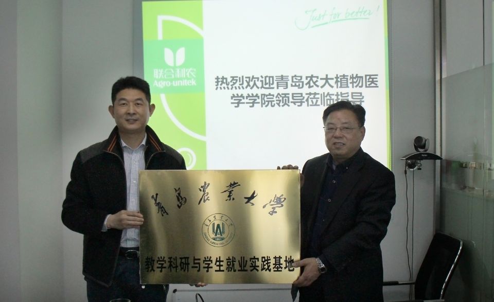 在青岛联合利农进出口有限公司,副总经理姜彦全就公司的发展概况、企业文化、实习生的实习情况等方面做了详细的介绍展示,并对公司2014级实习生踏实肯干的表现给予充分肯定。袁忠林结合植物保护专业发展趋势、办学特色,对双方后续的深度合作提出了殷勤期望。袁忠林与公司总经理冀科庆签署了合作协议书并为教学研究与员工就业实践基地揭牌。