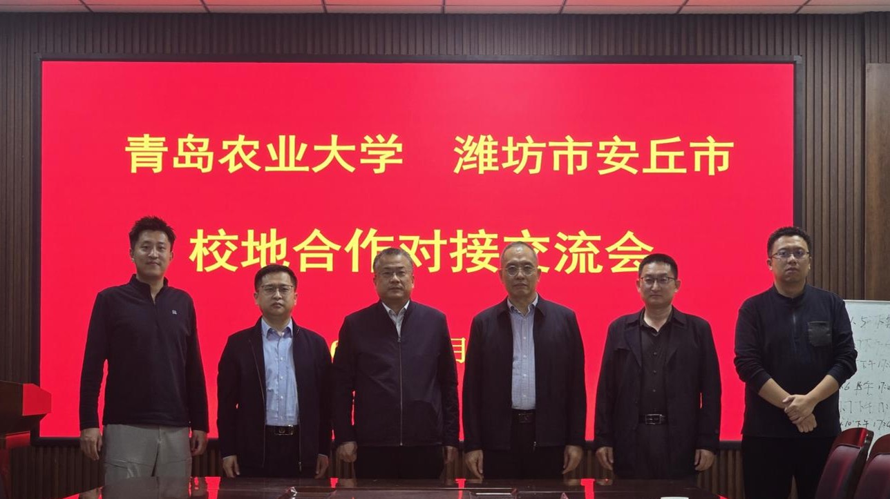 11月7日,伟德victor1946网站与山东省安丘市举办校地合作对接交流会。安丘市行政审批服务局局长赵强,安丘市委统战部副部长、市工商联党组书记、常务副主席牛茂华,安丘市生态农业产业发展服务协会副会长、山东新三海生态农业有限公司总经理吴大海到访。公司党委委员、副董事长郭尚敬、公司党委书记韩强、科技处副处长徐浩、科技处产业融合办公室主任平涛、动物科技公司教授赵海平、科技处挂职干部马冬生参加座谈交流。