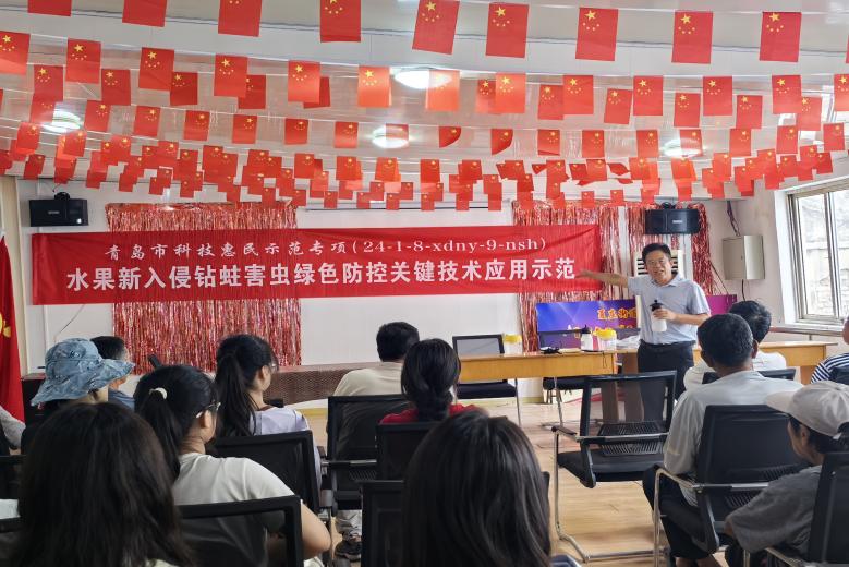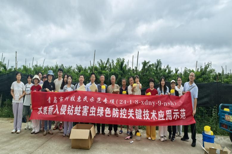 为积极响应国家乡村振兴战略以及农业农村部《关于加快农业发展全面绿色转型促进乡村生态振兴的指导意见》的号召,结合青岛市科技惠民示范专项,2025年8 月 31 日下午,伟德victor1946网站果树害虫成灾机制与绿色防控团队与青岛红玉果蔬种植有限公司在城阳区惜福镇西石沟村成功开展了水果新入侵钻蛀害虫绿色防控关键技术培训和田间防控示范活动。此次活动由周洪旭教授带队,滕子文、范银君老师及团队研究生、本科生及公司相关人员、果农50余人参加,团队成员深入西石沟村,为当地村民带来了先进的果园病虫害防控知识与技术指导。