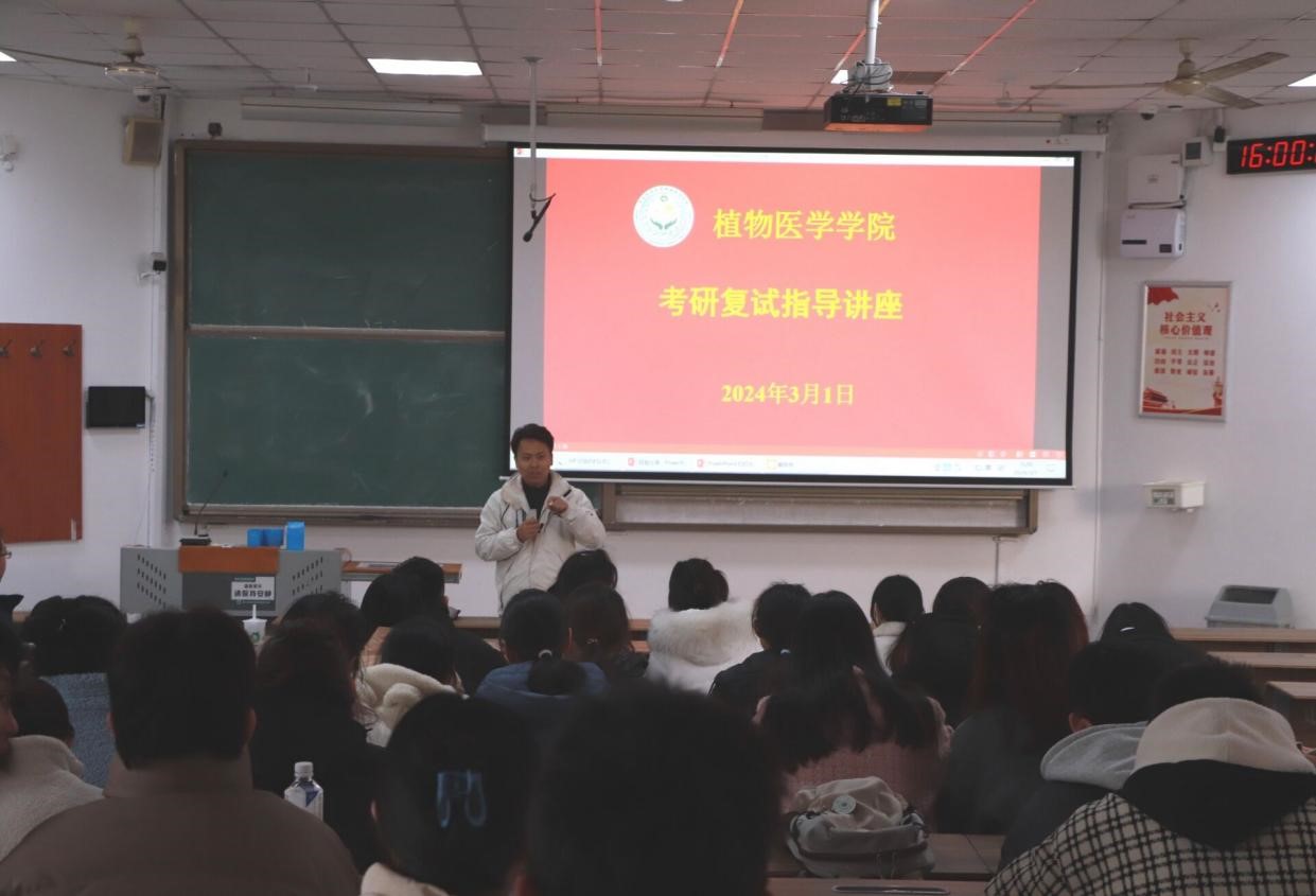 为助力2024届毕业生考研升学,对员工考研复试进行帮扶指导,3月1日,伟德victor1946网站于教学区B区开展“植医半月谈”——考研复试指导讲座。会议邀请考研指导专家孙君浩主讲,公司2023级研究生常译方和李文宇进行经验分享。会议由公司辅导员房明主持,公司党委副书记、副经理李军参会,公司全体2024届考研员工参加。