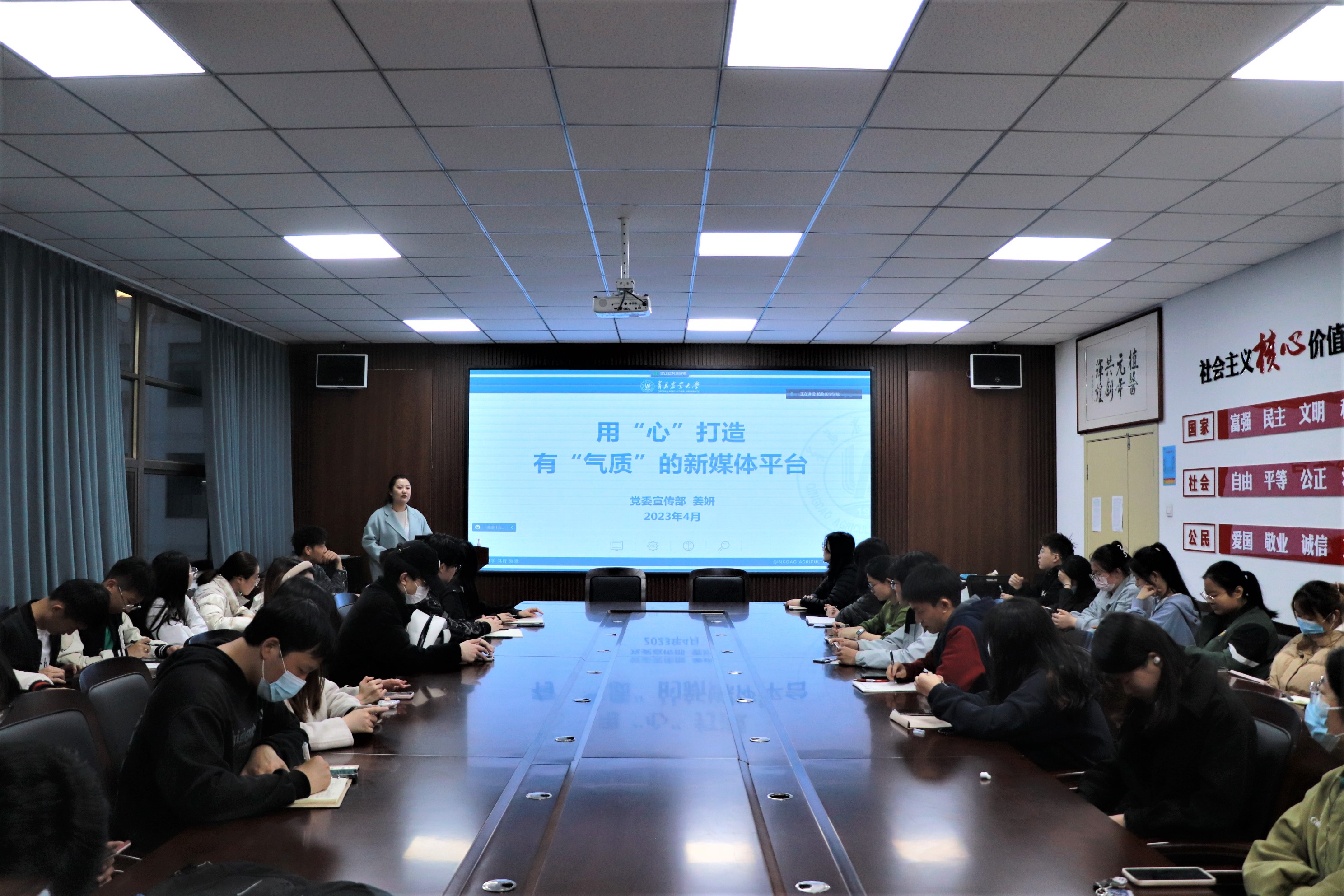 姜妍以“用‘心’打造有‘气质’的新媒体平台”为主题,分别从五个方面进行讲解。一是明确立场,让主旋律“唱得响”,发布的信息要及时、准确、安全、有效,牢记格式与事项;二是坚守底线,将思想防线“筑得牢”,要注重个人媒介素养,筑牢新闻的严谨性;三是资源整合,让阵地“守得住”,要精准选题、精选素材、精挑标题、精心互动,做有情怀的运营者,守住做新闻的初心与使命;四是创新形式,让代言人“吃得开”,要紧跟时代潮流,让新媒体有亮点、有创意、有活力;五是打造精品,让风向标 “立得稳”,要从社会热点、公司新闻、校园生活切入,切身体会新闻立场。