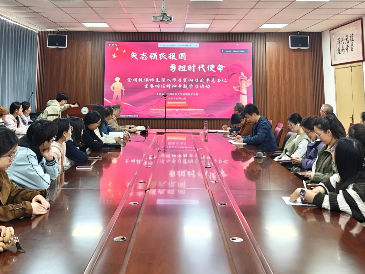 中国农业大学植物保护公司联合全国40个高校和科研单位共同举办“矢志强农报国,勇担时代使命——全国植保师生深入学习贯彻习近平总书记重要回信精神”专题学习活动。此次活动通过线上线下相结合的方式,有效引导全国植保师生深化认识、汲取力量,坚定了将学习成果转化为服务农业强国建设实际行动的决心。