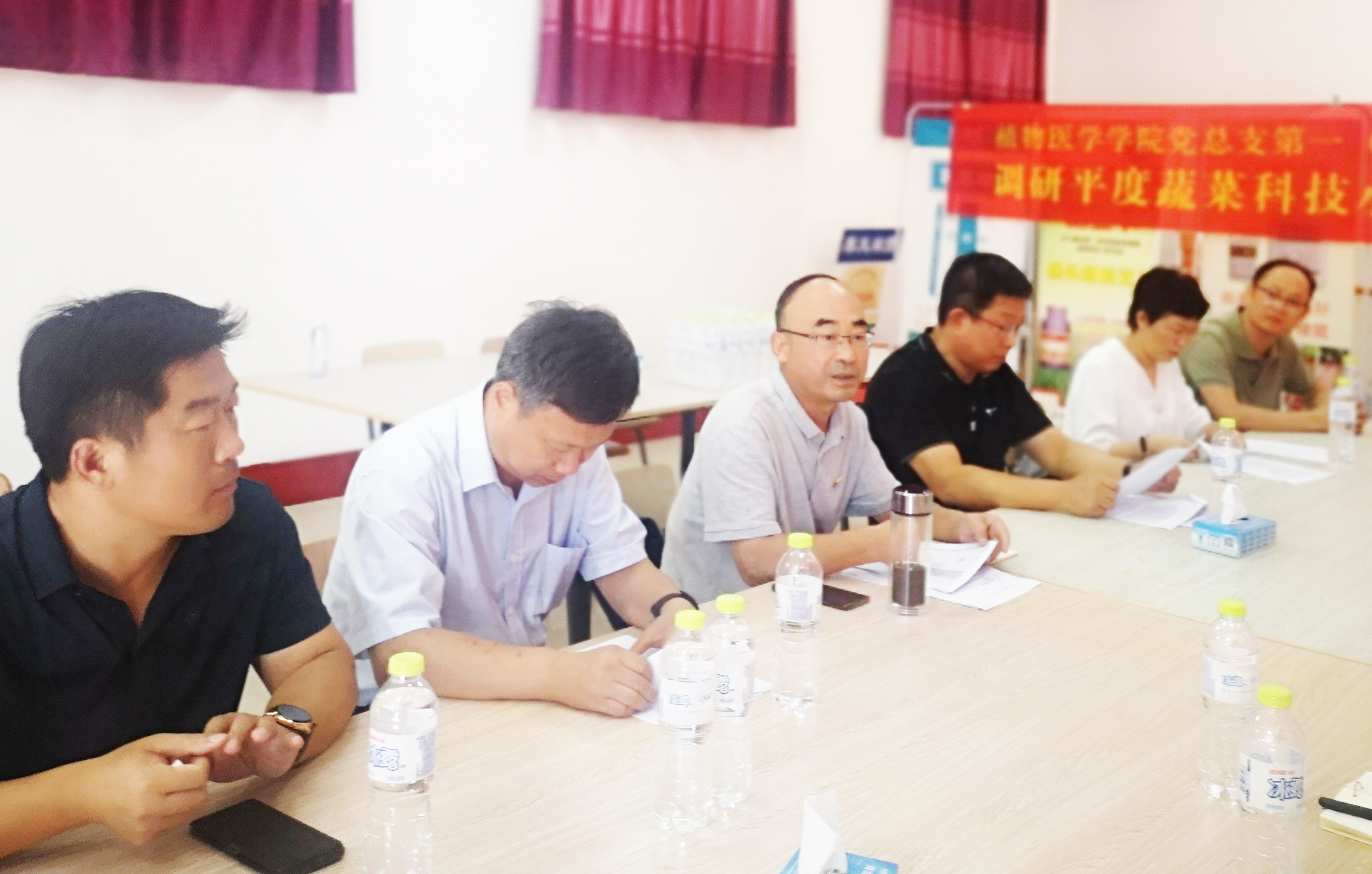 2022年8月24日,伟德victor1946网站副经理赵洪海教授带领植物病理系主任练森副教授及5名教师到平度市仁兆镇厚天农资销售公司与青岛市业务主管部门、当地政府、合作企业探讨“平度市蔬菜科技小院”建设模式。青岛市农业农村局农技推广中心副主任李晓东、植保部部长王连刚、平度市农业农村局副局长孙美芹、仁兆镇副镇长柴倩倩等20余人参与讨论会。