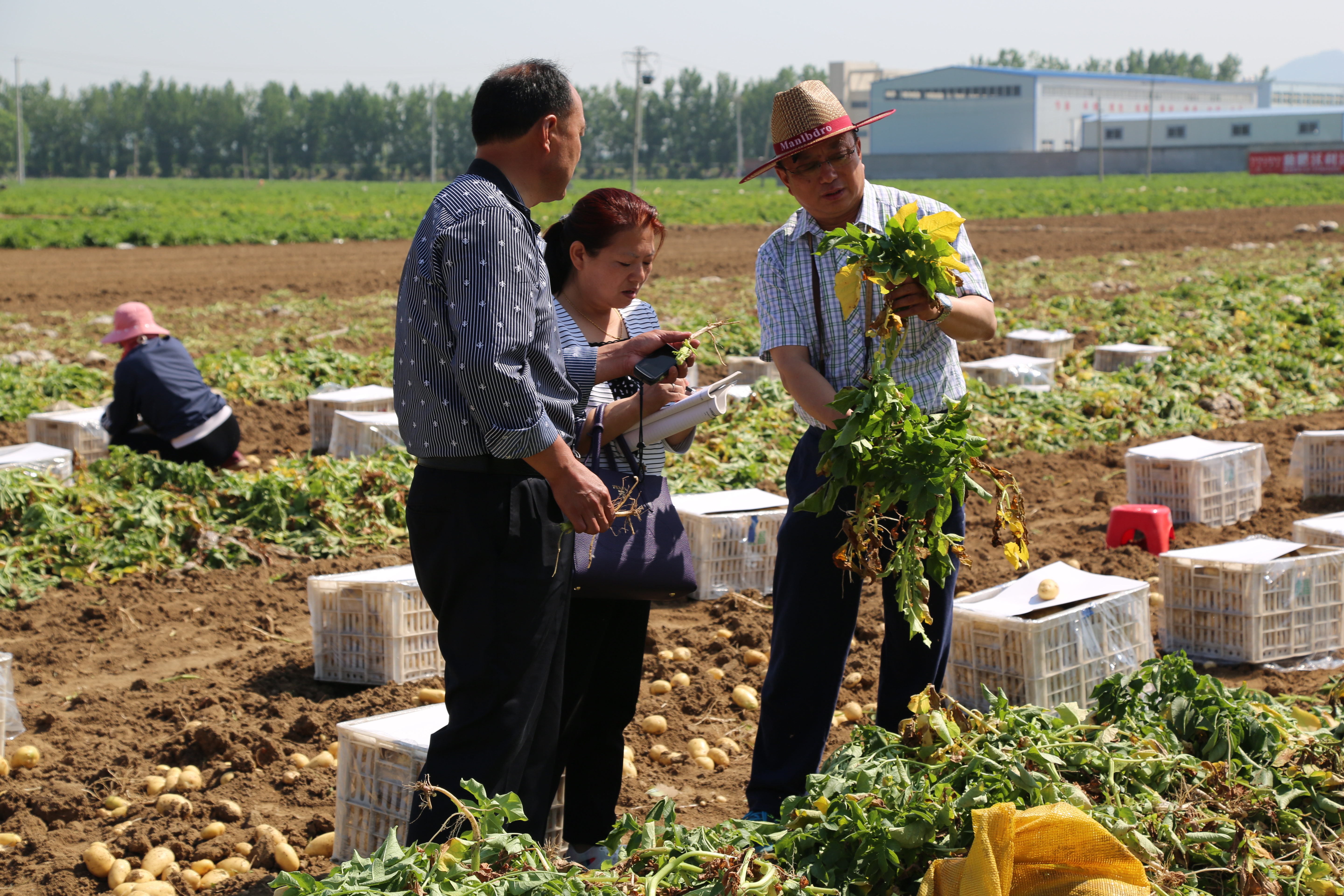 张剑峰教授,山东省现代农业产业技术创新团队薯类体系岗位专家,主要从事植物病毒及马铃薯病害研究,多次为植保站基层技术人员和农民培训薯类病虫害预防及综合防控知识。图为2017年6月,张剑峰教授应枣庄农科院邀请在滕州进行马铃薯疮痂病调查,指导马铃薯疮痂病的田间诊断与防控。