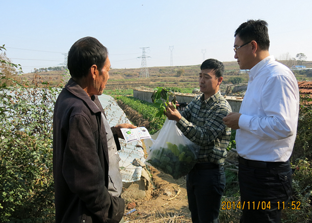 郑长英教授在指导农户韭菜安全生产工作,详细讲解韭菜生产过程中如何防治常见的病虫害,使当地农户有了更明确的防治措施。在减少病虫害的同时,注重韭菜的安全生产,防止“毒韭菜”事件的发生。