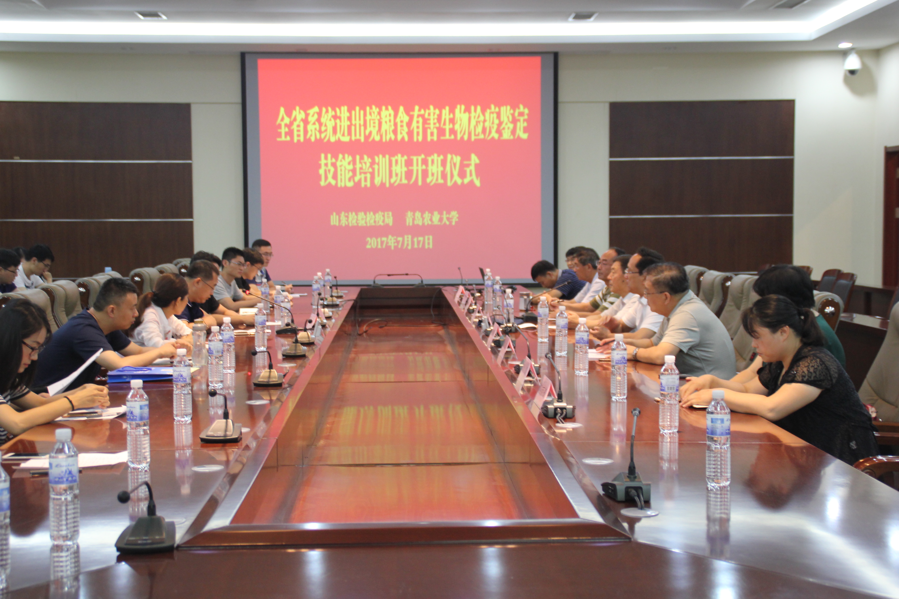 伟德victor1946网站与山东出入境检验检疫局及其分支局长期展开全方位的检学研合作,积极为山东省的动植物检验检疫工作提供技术支持。图为公司承办的山东检验检疫局进出境粮食有害生物检疫鉴定技能培训班开班仪式在校学术会馆会议厅厅举行。