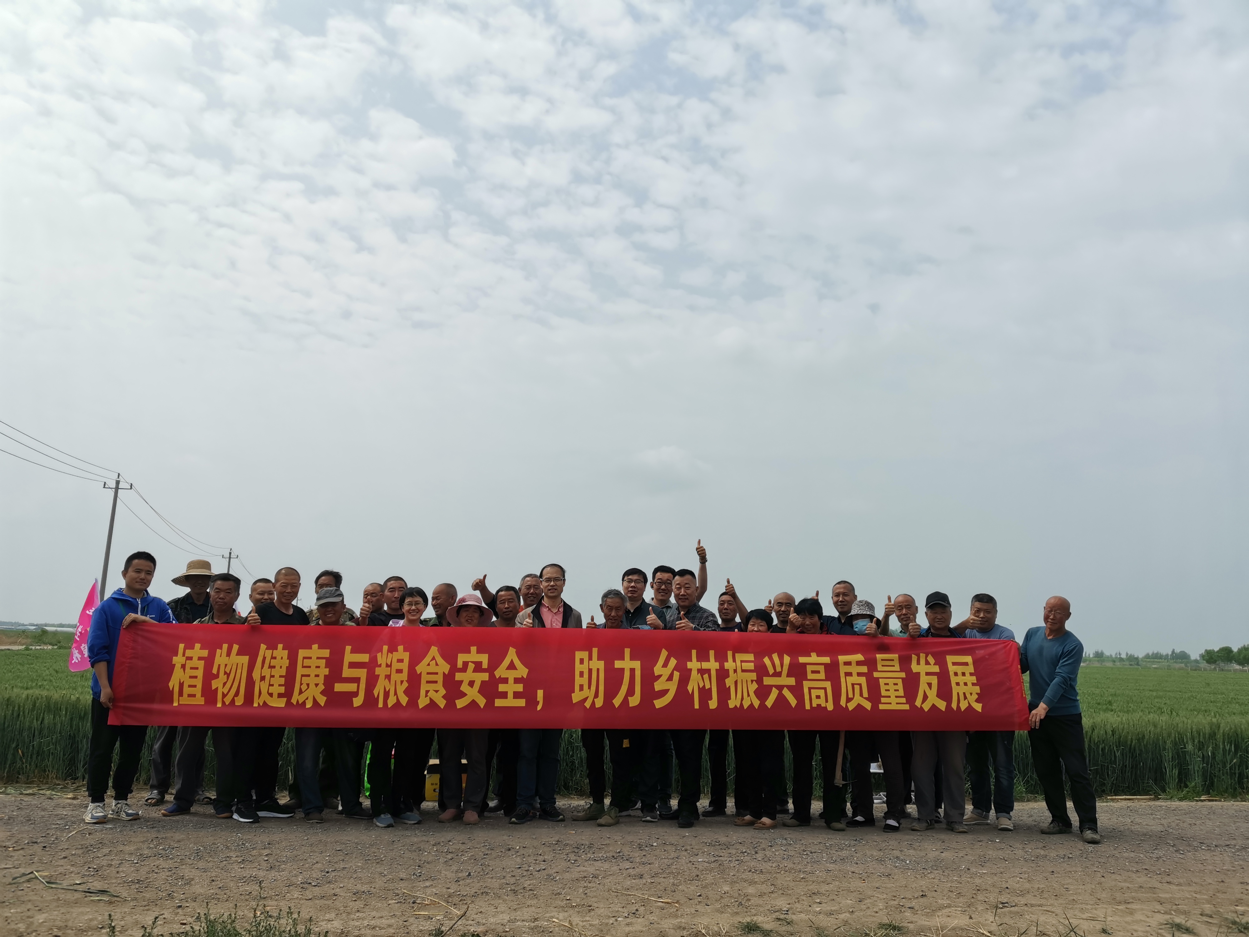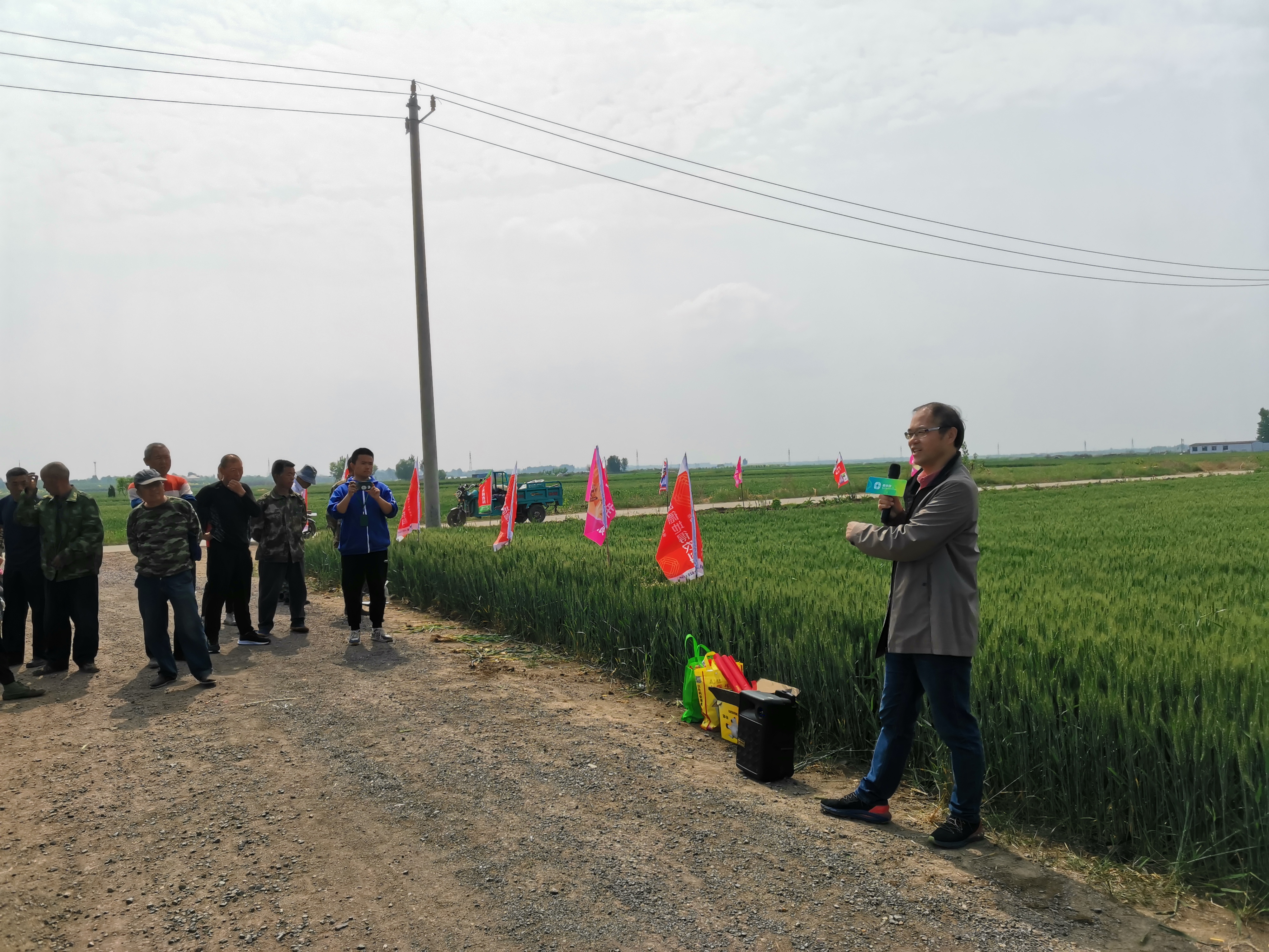 为深入贯彻落实习近平总书记在中央农村工作会议及在山东考察时的系列重要讲话精神,进一步提高保护植物健康对消除饥饿、减少贫困、保护生物多样性及推动绿色发展重要意义的认识,围绕农业高质量发展中病虫草害绿色防治等关键问题开展诊断和防治技术培训,旨在宣传植物健康保护,减轻灾害风险,守护美好家园,进一步夯实“三农”压舱石,为夺取全省夏粮小麦丰收提供科技支撑。5月12日上午,伟德victor1946网站副经理黄金光教授带领小麦绿色防控团队成员一行3人到即墨市段泊岚镇麦戈庄小麦示范田开展“植物健康与粮食安全,助力乡村振兴高质量发展”培训指导,青岛德地得农化科技服务有限公司小麦技术方案推广员、段泊岚镇种粮大户负责人等40余人参加了活动。