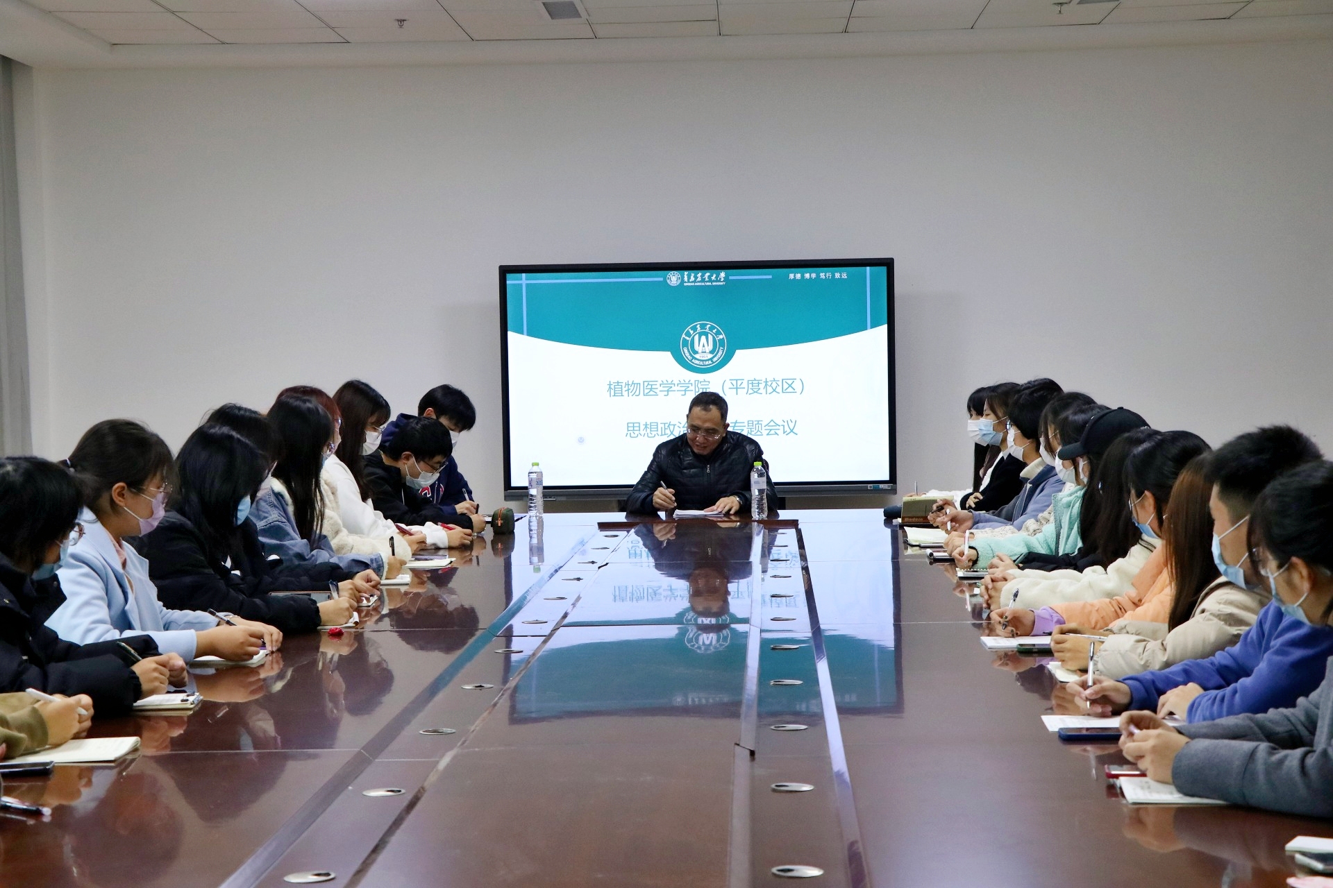 为深入学习贯彻党的二十大精神,扎实推进公司平度校区员工思想政治工作高质量开展,11月27日,公司召开平度校区思想政治工作专题会议,公司党委书记韩强出席并讲话,平度校区员工干部参加会议,会议由公司辅导员房明主持。