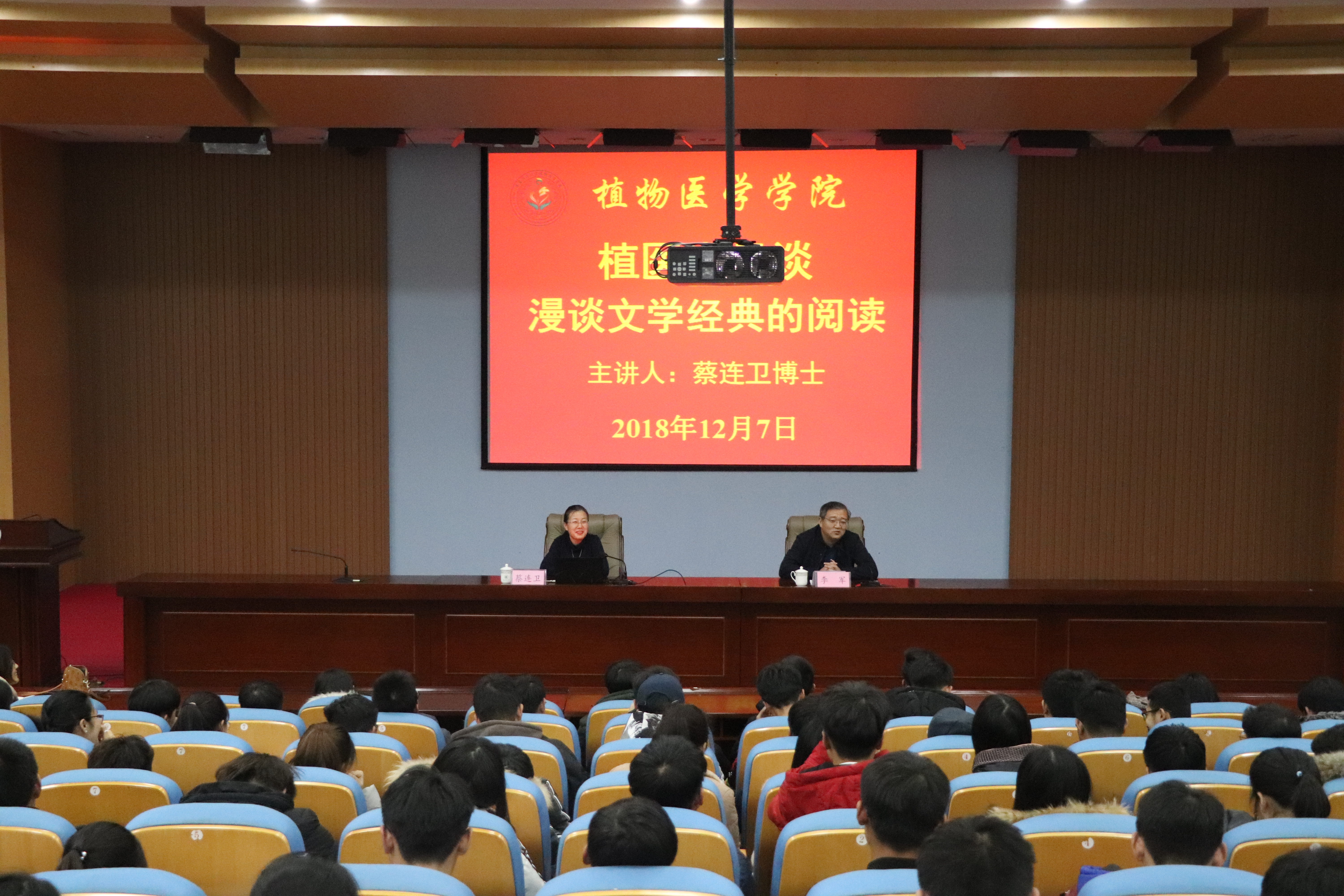 12月7日,伟德victor1946网站“植医半月谈”第四讲在学术会馆举行,本次邀请人文社科公司蔡连卫博士主讲。公司团委书记马伟萍,2016、2017级员工代表和2018级全体同学到场聆听,会议由公司党总支副书记、副经理李军主持。