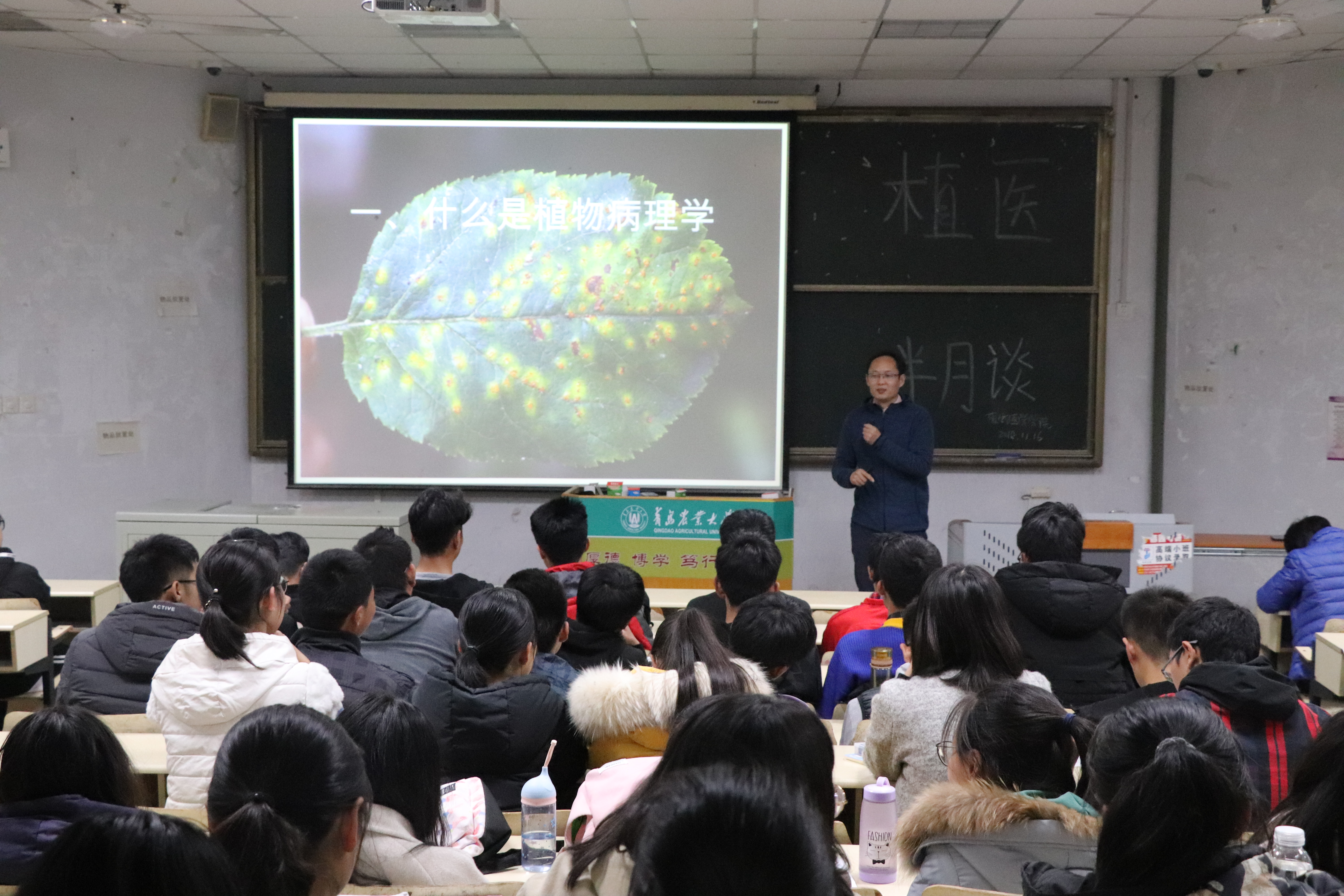 11月16日,伟德victor1946网站“植医半月谈”第三讲于教学楼开讲,公司昆虫系郑桂玲老师,病理系练森老师,农药系郭磊老师参与活动,2018级全体同学参加。