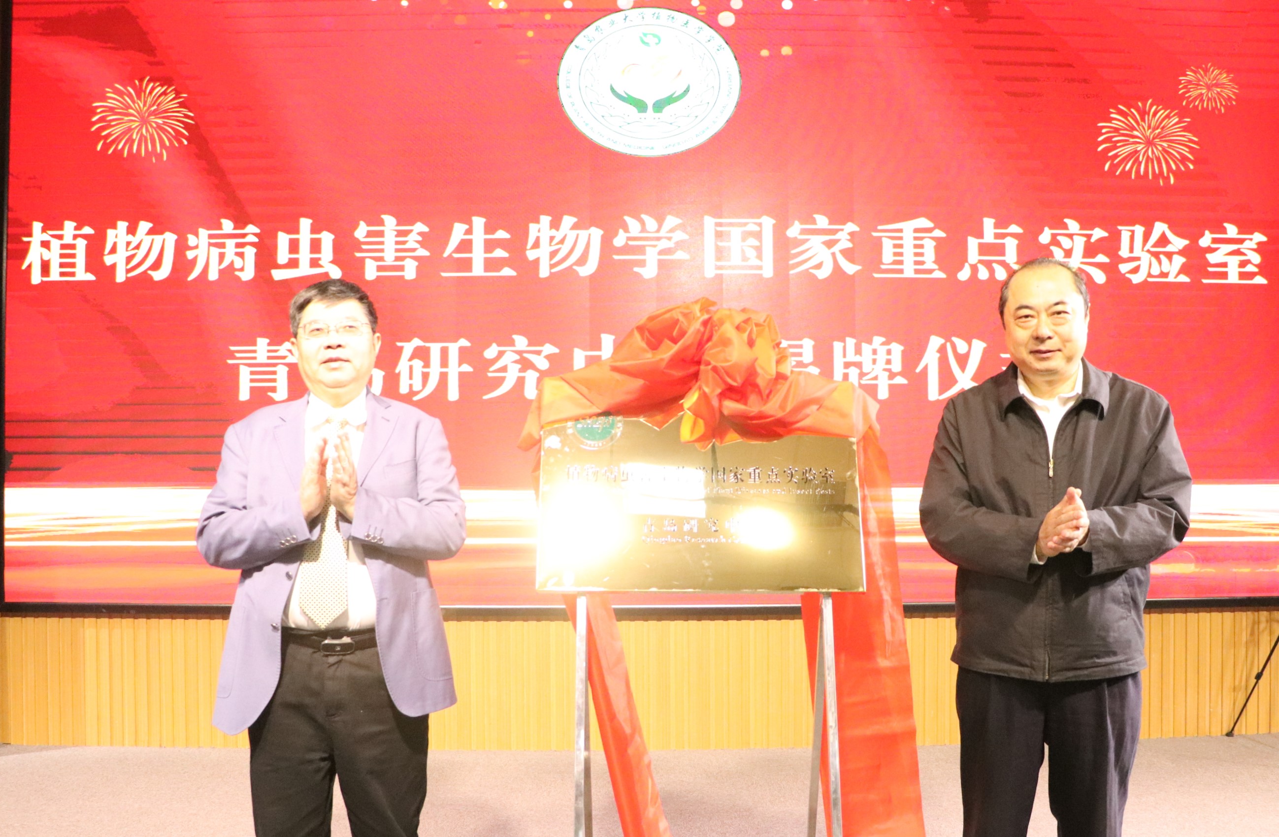 会上,刘新民和周雪平签订植物病虫害生物学国家重点实验室青岛研究中心共建协议书,并举行揭牌仪式。