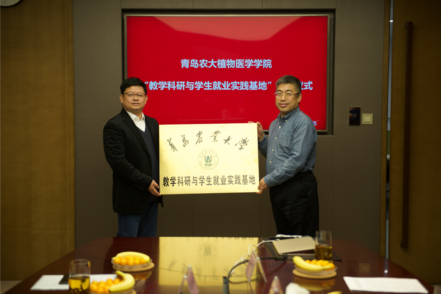 3月6日,伟德victor1946网站又一教学科研基地在青岛中达农业科技公司设立,公司党总支书记王进国向中达公司董事长栾守业先生授牌。公司党总支副书记、副经理李军,副经理黄金光和中达公司副总裁林存銮、研发总监崔凤云等参加了授牌仪式。