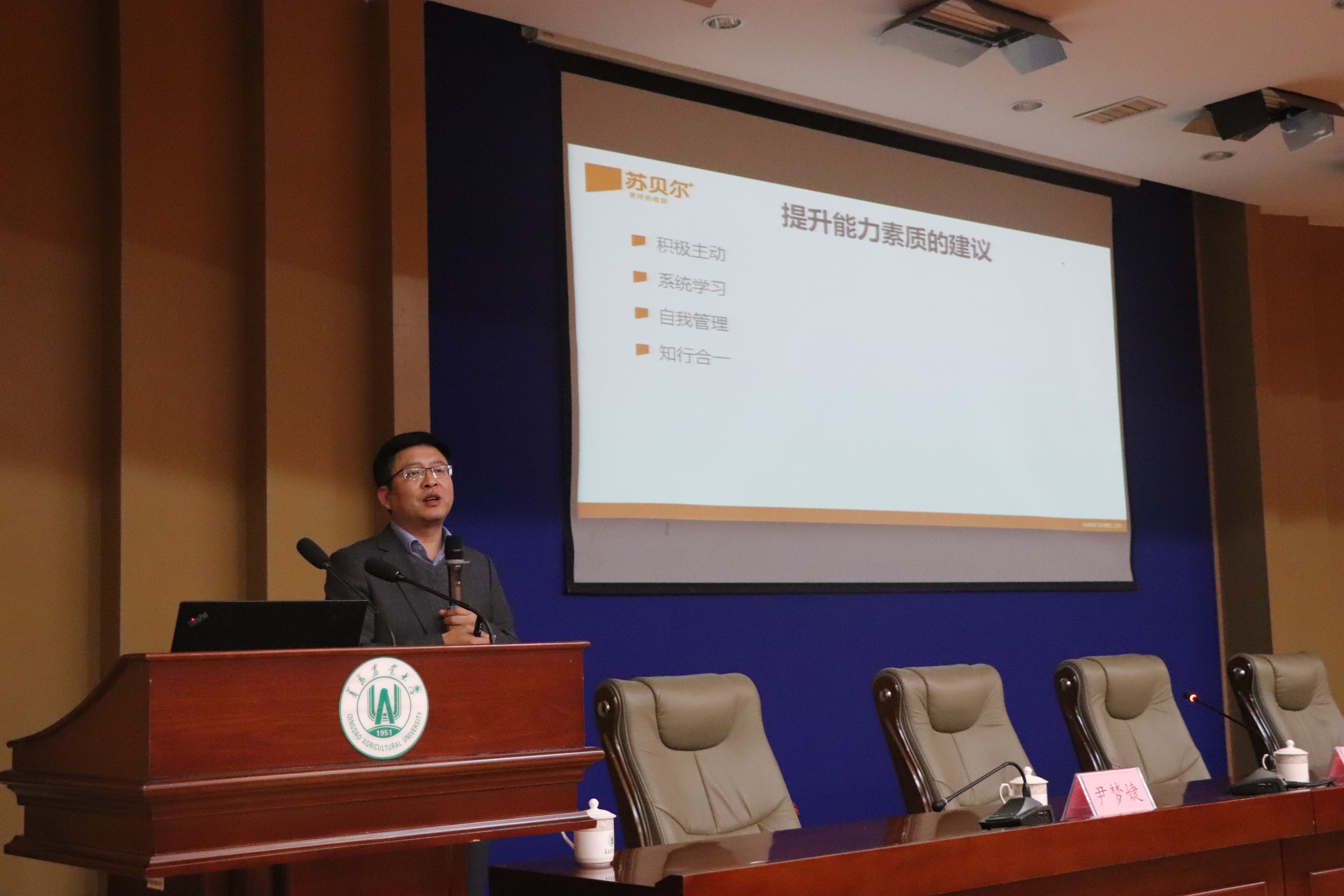 11月25日,伟德victor1946网站在学术会馆第二报告厅举行“植医半月谈”第五讲,本次邀请员工企业苏贝尔作物营养有限公司副总经理张焕军为员工作行业发展专题报告,苏贝尔公司人事经理李方芳,公司党总支副书记、副经理李军,团委书记王丽静,2017级、2018级员工干部及2019级全体同学参加,会议由公司辅导员丁晨主持。