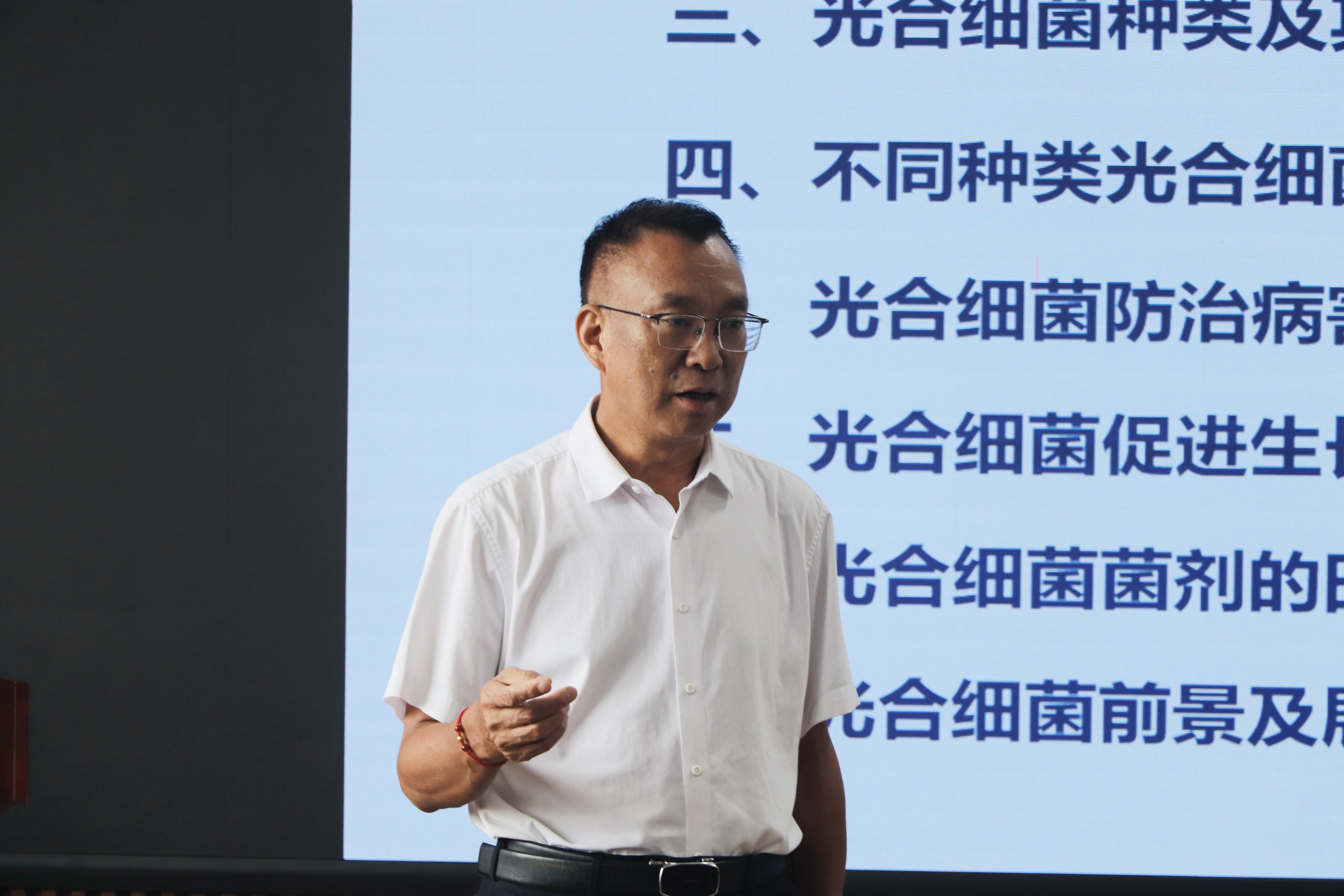 刘勇研究员作了题为“光合细菌源微生物新种质的创制与在防控植物病害中的应用”的报告。报告详细介绍了其团队在光合细菌新种质创制、抗病促生机理研究及绿色防控技术集成应用方面的最新进展,为农作物病虫害绿色防控提供了重要科技支撑。