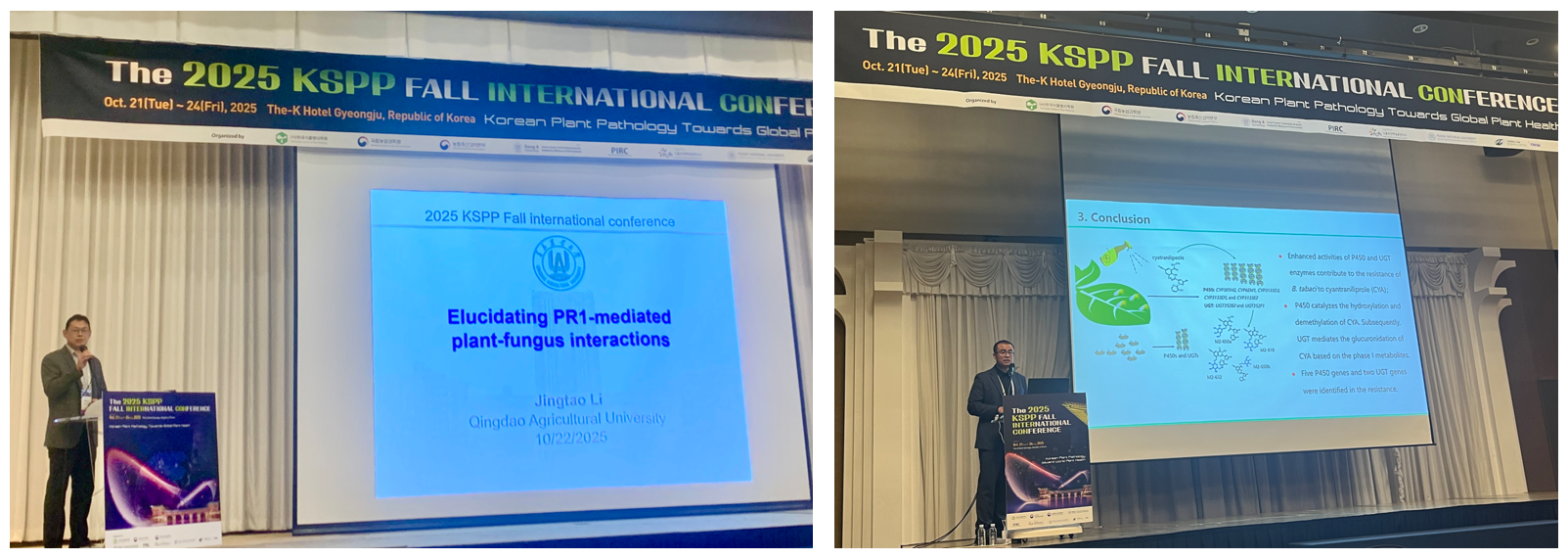 此外,伟德victor1946网站李敬涛教授、郭磊副教授受邀参加了2025年韩国植物病理学会秋季国际会议,并分别作了精彩的学术报告,在分享公司植物病理领域最新研究成果的同时,引发了与会各国学者的关注与讨论,更加有力地推动了公司与国外同行的深度交流与合作。