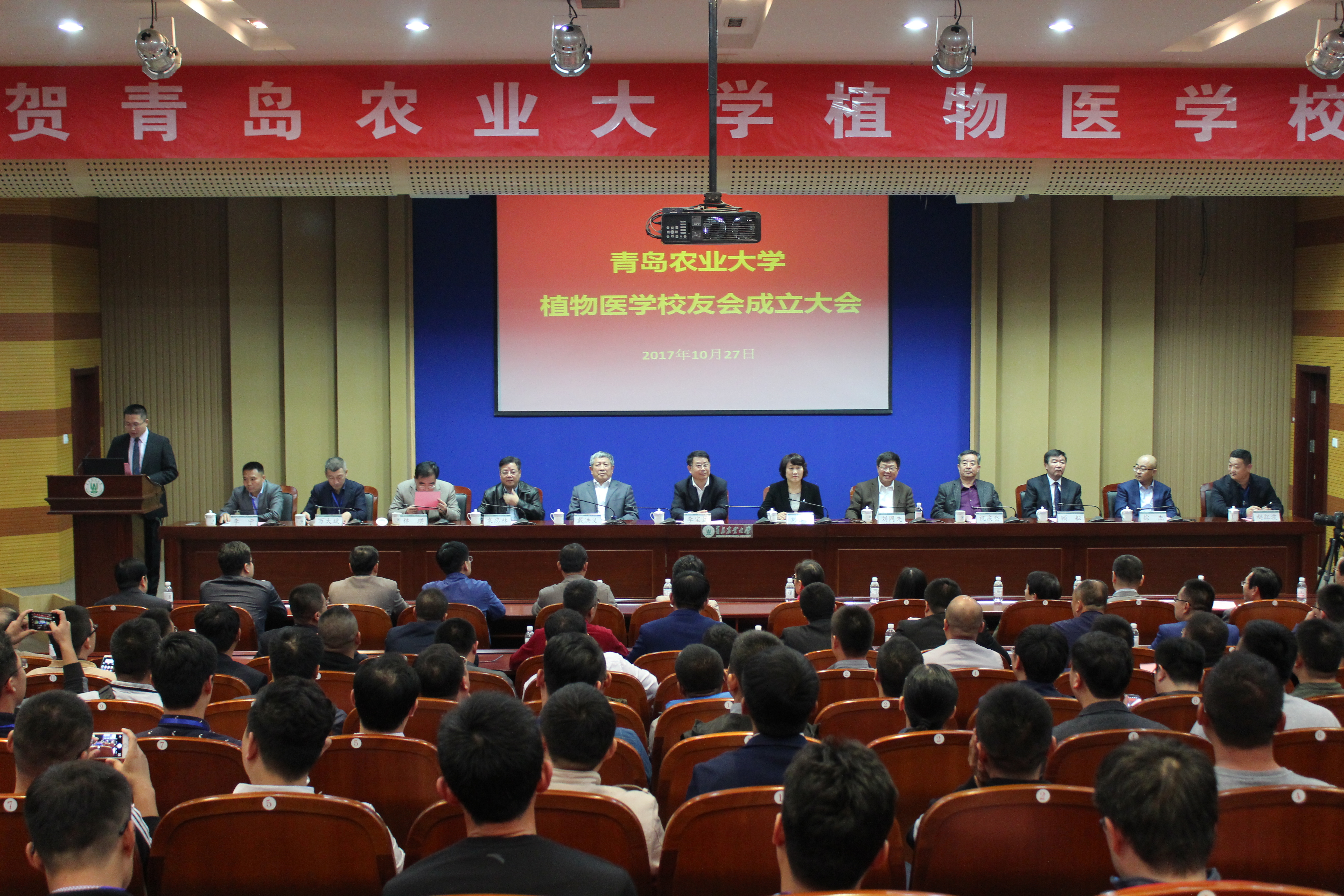 10月27日下午,伟德victor1946网站植物医学员工会成立大会隆重召开。公司党委书记李宝笃、副董事长刘春霞、原副董事长戴洪义出席会议。伟德victor1946网站经理刘同先、党委书记袁忠林、原植保公司党总支书记、经理祝庆岱、原农学与植物保护公司经理林琪、原植物保护公司教师顾耘,94级员工、青岛苏贝尔作物营养有限公司董事长万太斌,94级员工、烟台大为农业科技有限公司董事长徐杰,97级员工、山东康乔生物科技有限公司董事长李宁,01级员工、青岛瀚生集团事业部总经理赵红波以及来自全国各地的100多名员工参加会议。