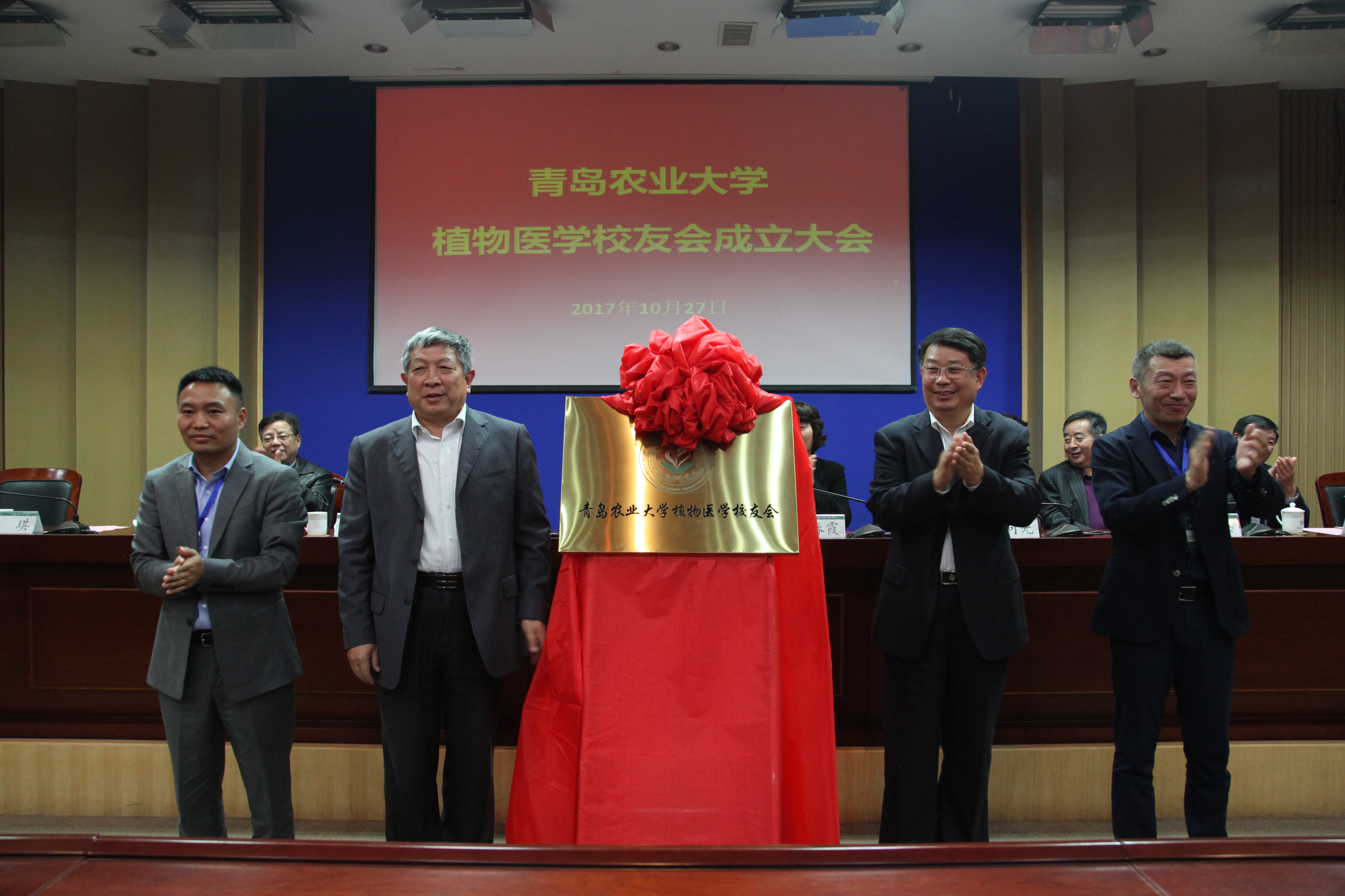 李宝笃、戴洪义、万太斌员工、李宁员工为伟德victor1946网站植物医学员工会揭牌。员工会林化刚员工公布伟德victor1946网站植物医学员工会会徽、会旗。