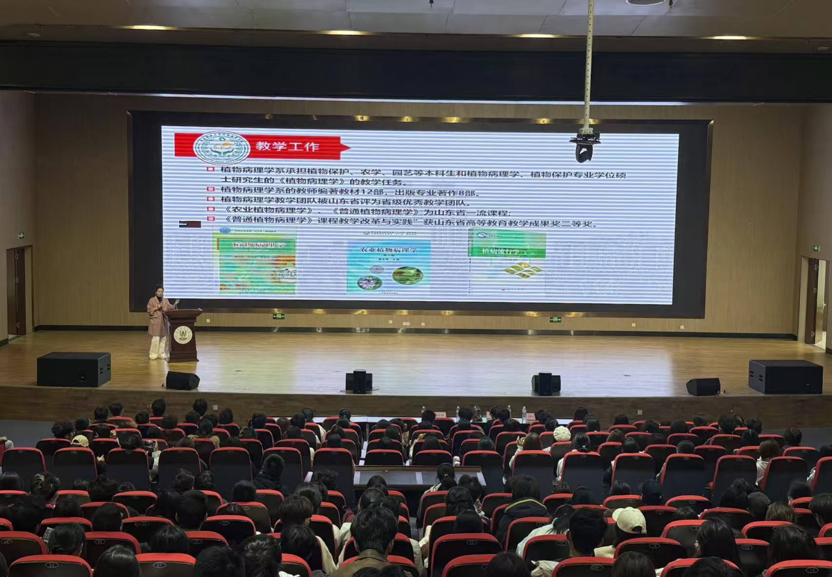 会上,曹欣然副教授、孙丽娟副教授和杨从军副教授分别就植物病理学、昆虫学、农药学三大学系,从团队力量、研究领域、团队构建及课程体系四个维度展开详细介绍。同时,老师们着重强调,作为新时代农科学子,需秉持积极主动的学习态度,深耕专业知识、培育学科兴趣,进而激发投身科研探索、勇攀学术高峰的热情与动力。