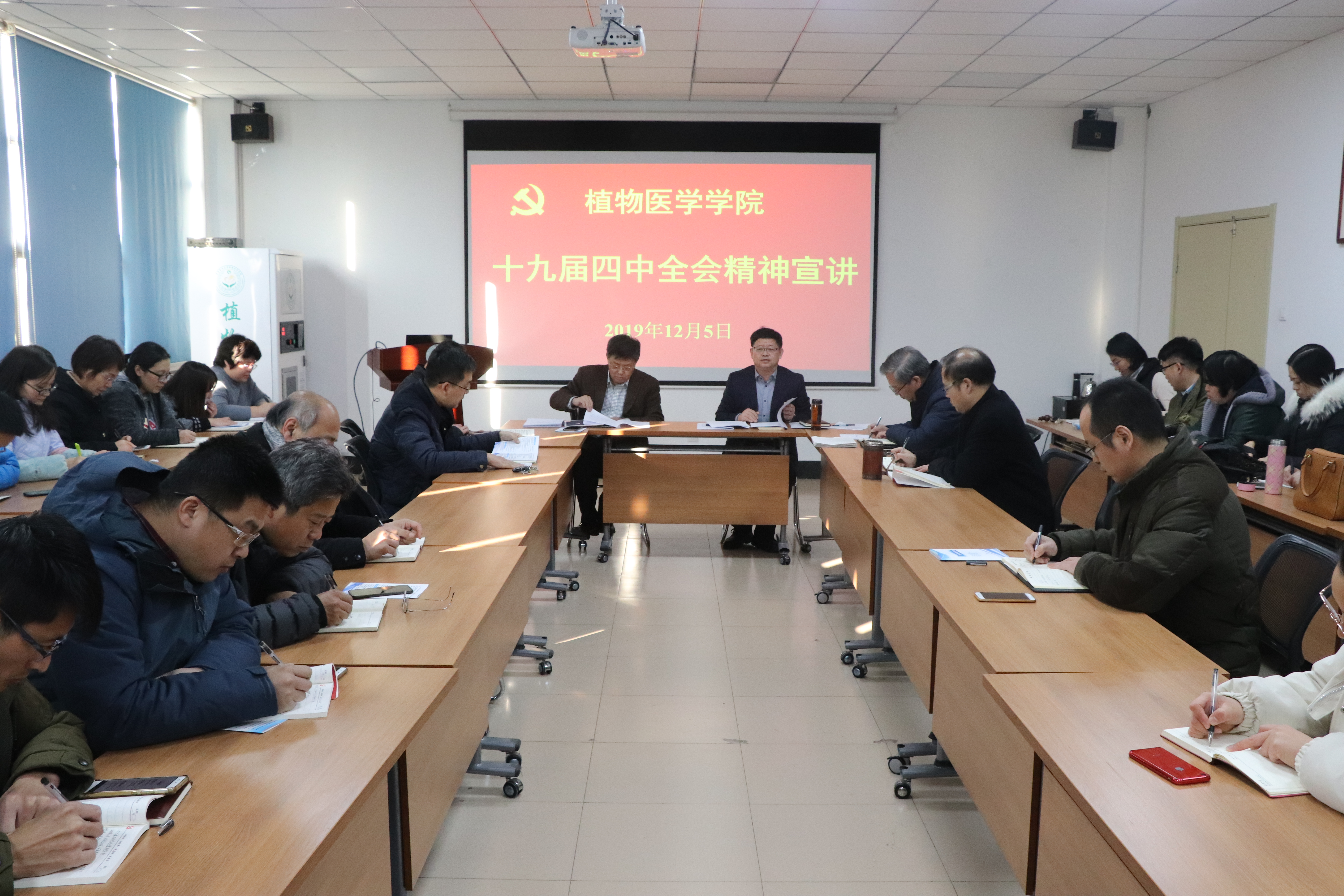 为全面深入贯彻落实十九届四中全会精神,2019年12月5日,伟德victor1946网站于生物楼会议室召开十九届四中全会精神会。公司党总支书记王进国主讲,公司全体教师参加。