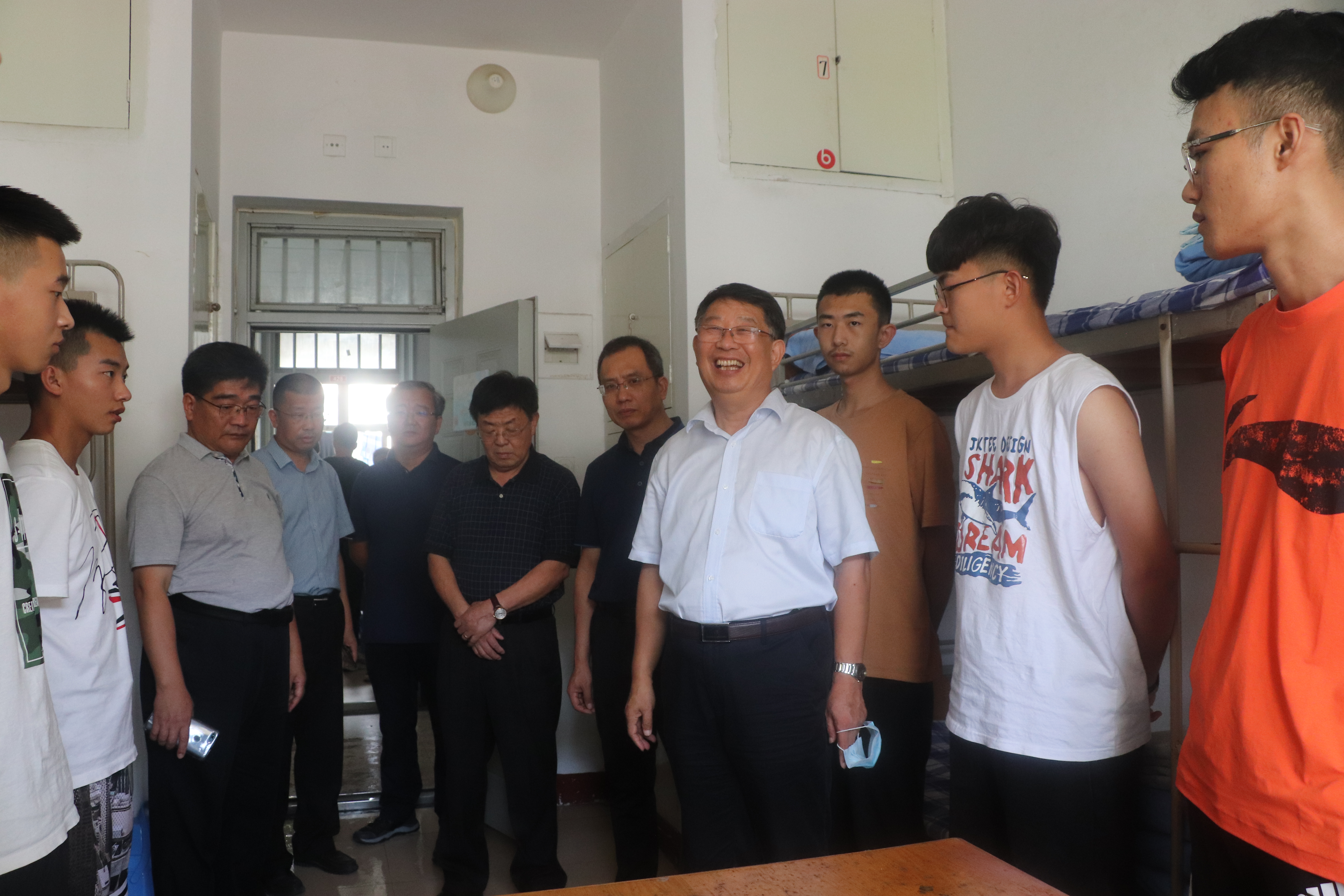 9月13日下午,青岛农业大公司党委书记李宝笃,党委副书记单连岱,学工部部长王清春前往宿舍区走访慰问伟德victor1946网站2020级新生,公司党总支书记韩强,经理刘同先等人陪同走访。