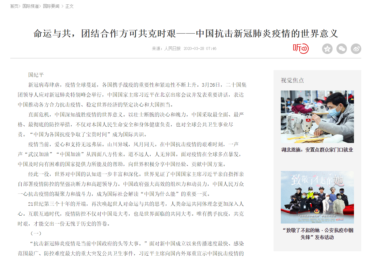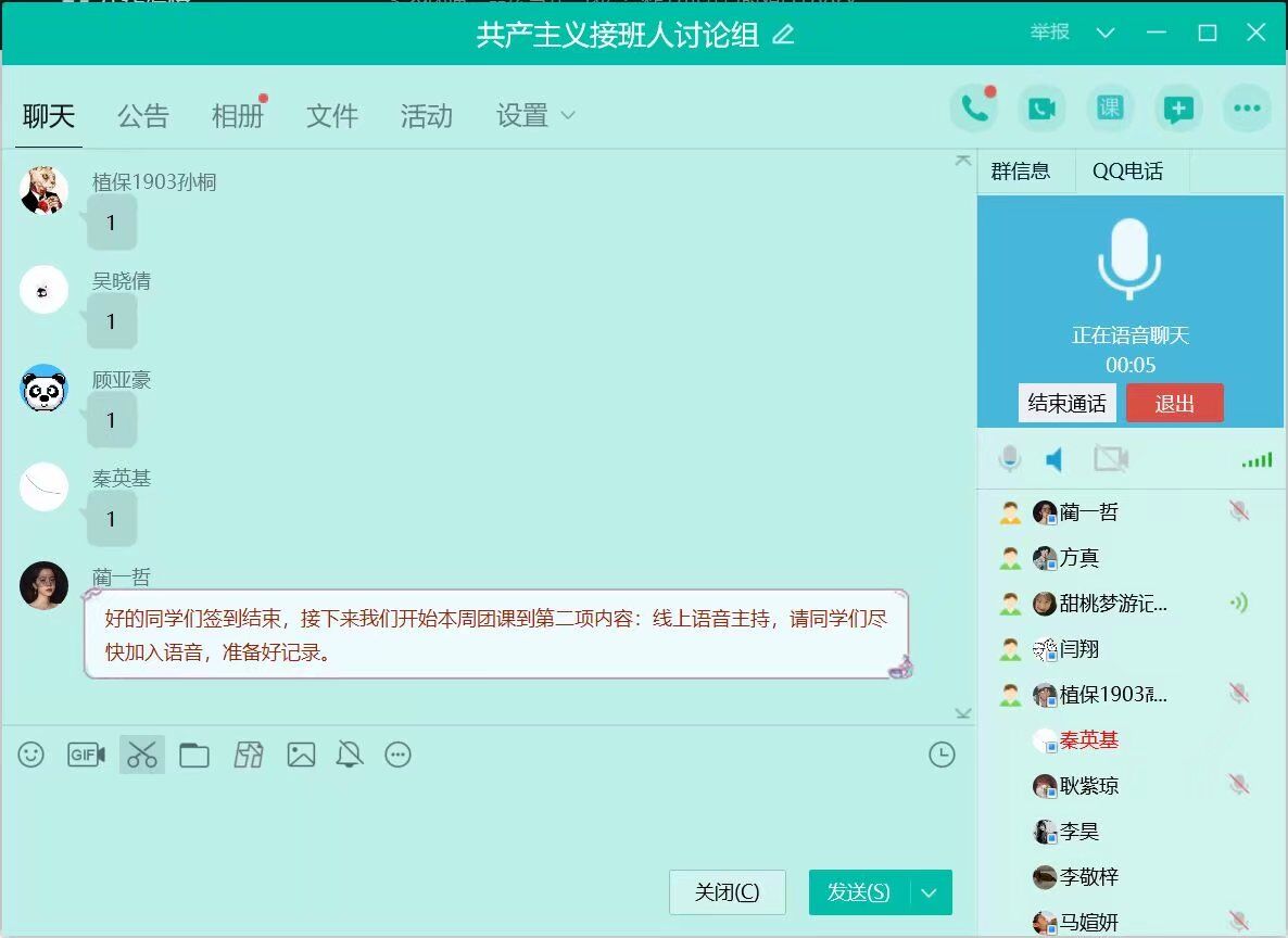 会上,各团支部主讲人通过“云端”与同学们对话,对当前疫情的最新情况做出说明,同时指出在新型冠状病毒前,中国抗击疫情的关键性作用及重大意义,并向同学们举例说明中国在疫情面前所体现出来的强大的组织力和动员力,以及中国人民万众一心抗击疫情的凝聚力和战斗力。学习中强调,中国始终坚持秉承人类命运共同体理念,以壮士断腕的决心和魄力,将人民的生命健康放在首位,直面危机,在防疫抗疫战争中做出贡献,为世界增添积极能量。政治学习期间,全体同学积极就“全球命运共同体”、“抗击疫情”等主题纷纷发言。并表示出对中国及全世界在抗击疫情必将取得最终胜利的坚定信心。
