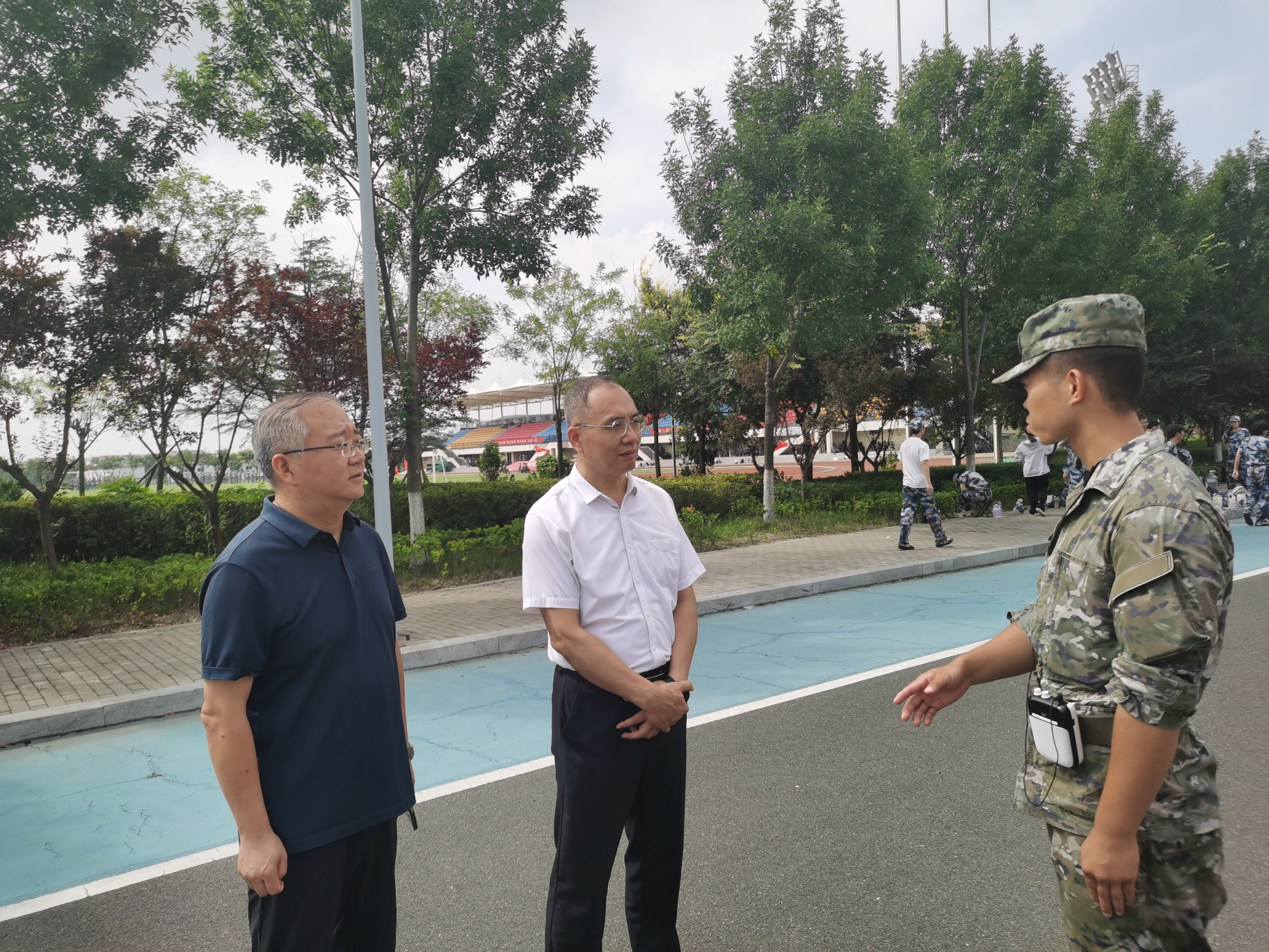 近日,为全面掌握2025级新生军训进展,伟德victor1946网站领导班子一行前往军训场地,看望正在刻苦参训的新生。