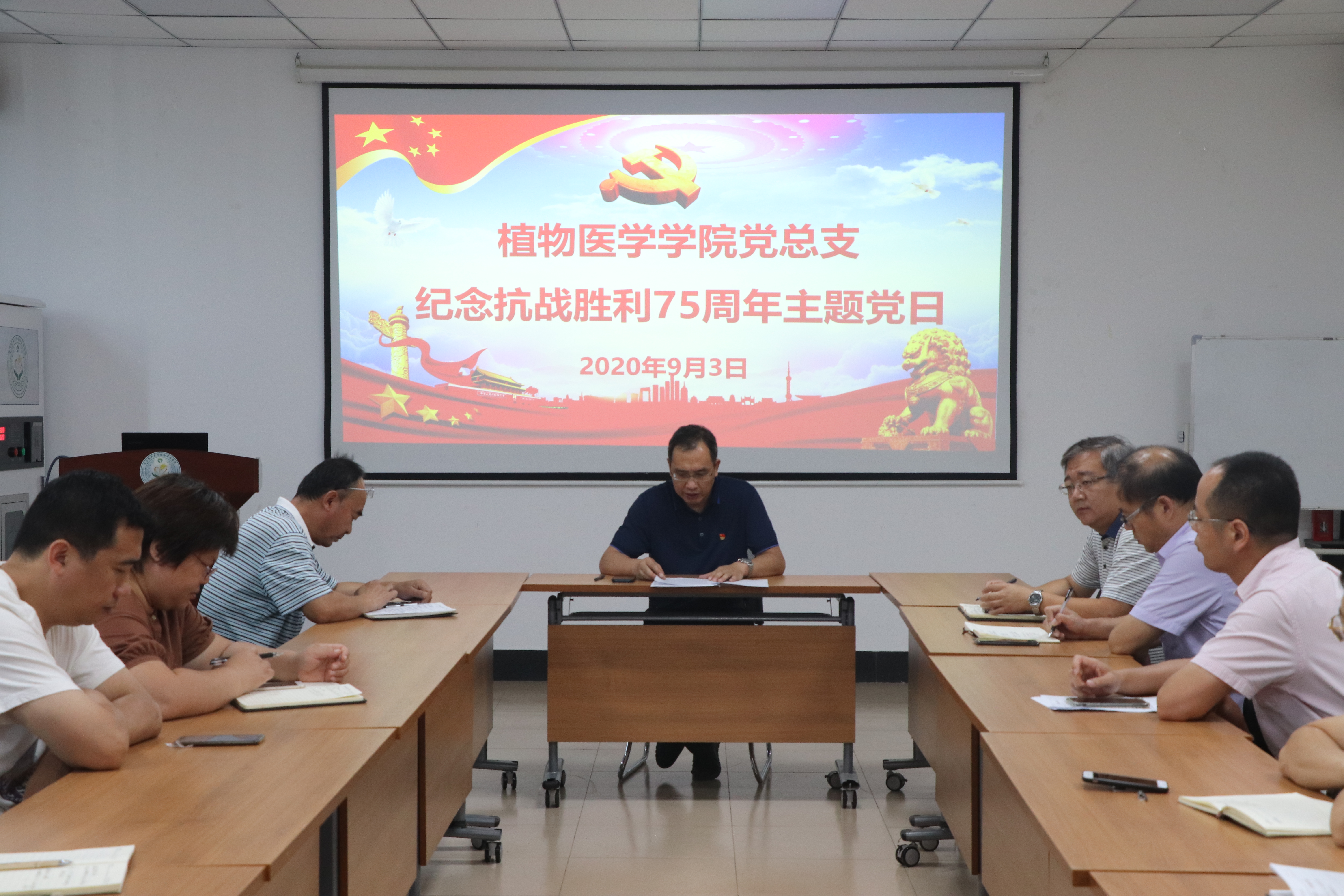 为纪念中国人民抗日战争暨世界反法西斯战争胜利75周年,弘扬抗战精神,传承红色基因,不忘初心使命,9月3日,伟德victor1946网站公司党总支于公司会议室开展纪念抗日战争胜利75周年主题党日活动。党总支书记韩强,党总支副书记、副经理李军,副经理赵洪海,副经理黄金光,团委书记王丽静,全体师生党员参加,会议由韩强主持。