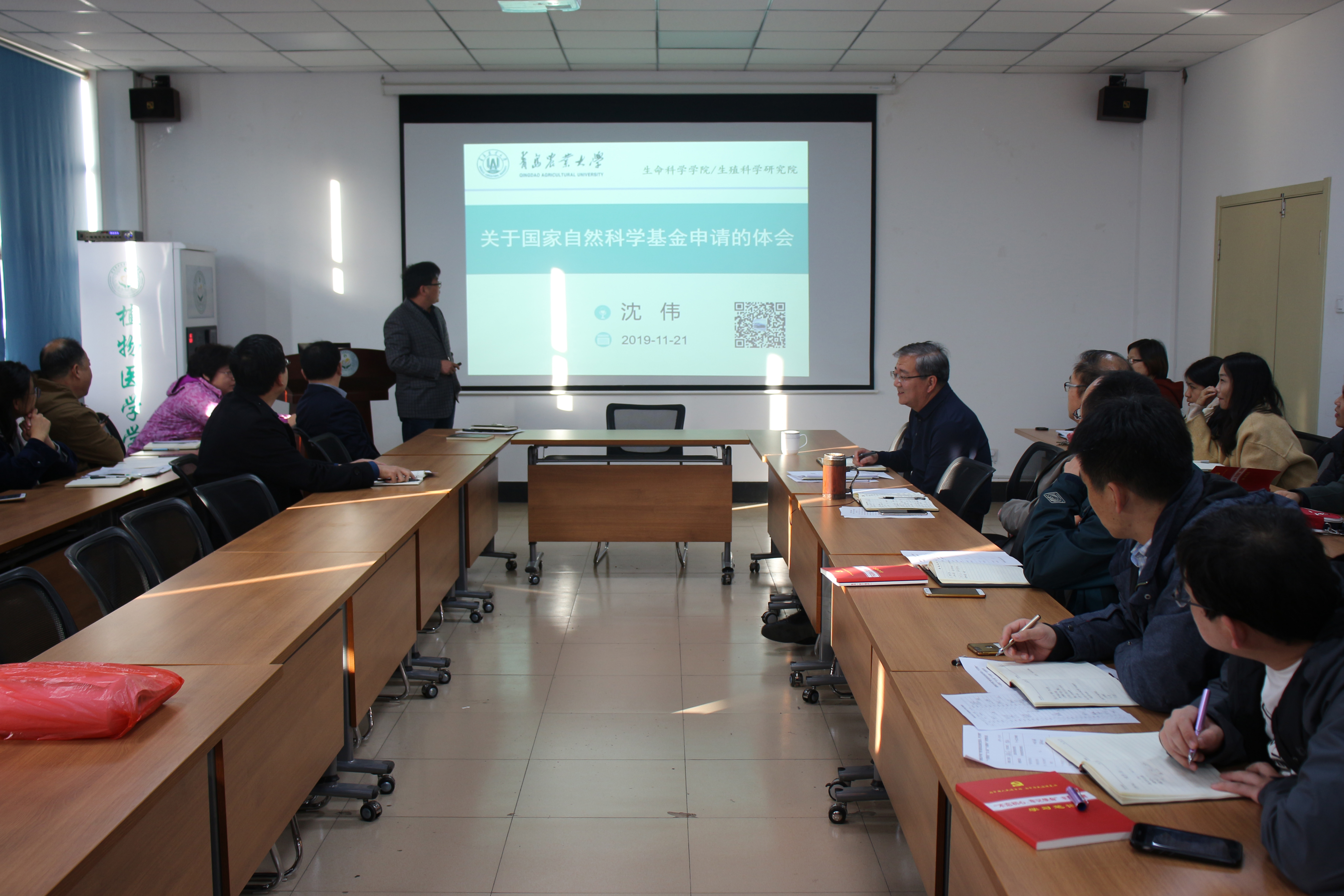 11月21日,伟德victor1946网站在生物楼N406召开2020年度国家自然科学基金项目申报指导会,邀请生命科学公司副经理沈伟教授主讲。公司全体教师参加,会议由公司副经理褚栋主持。