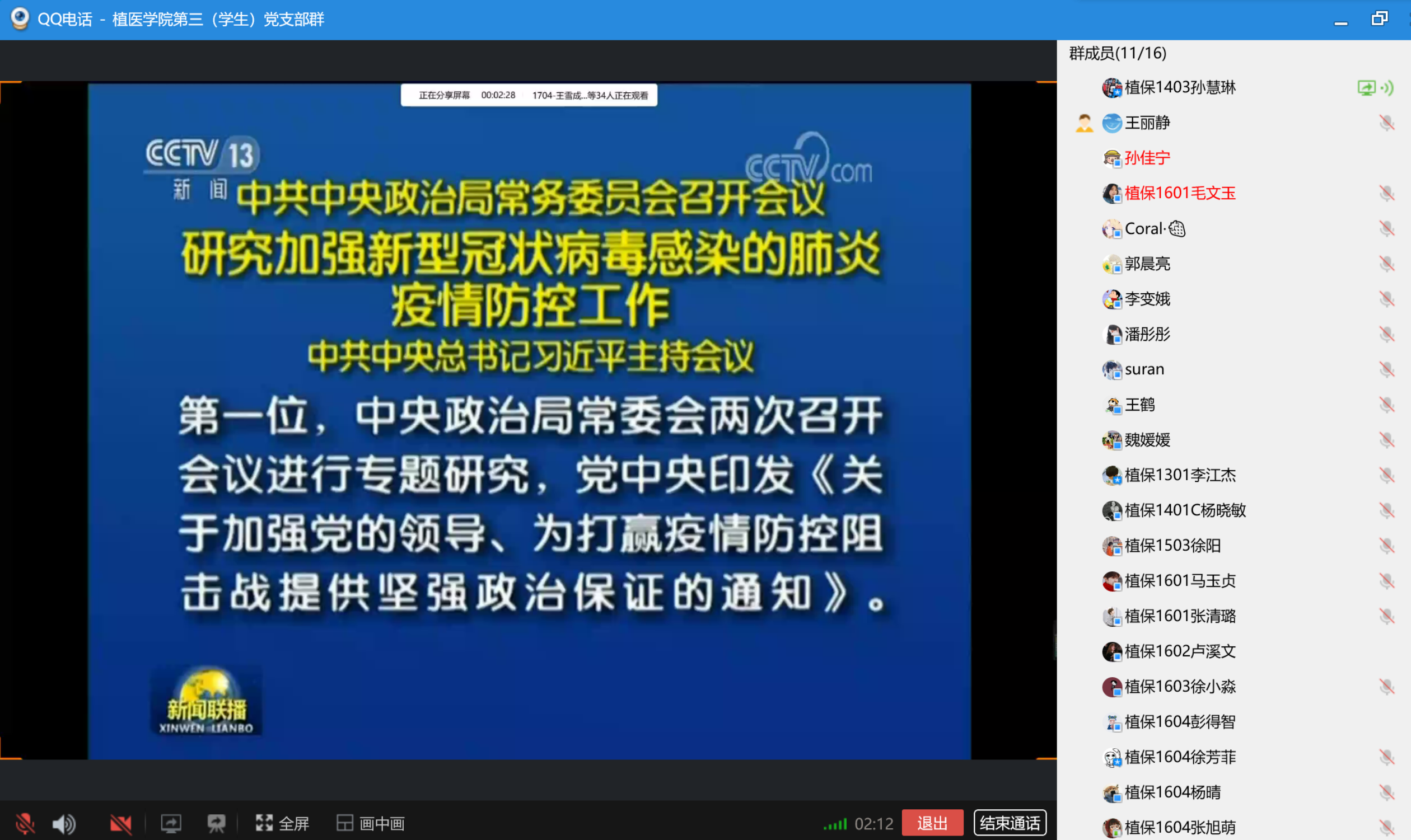 3月26日晚,公司第三(员工)党支部通过网络直播连线召开线上政治学习,深入学习和贯彻习近平总书记重要讲话精神。公司团委书记、第三(员工)党支部书记王丽静及全体员工党员参加,会议由员工党员李雯主持。