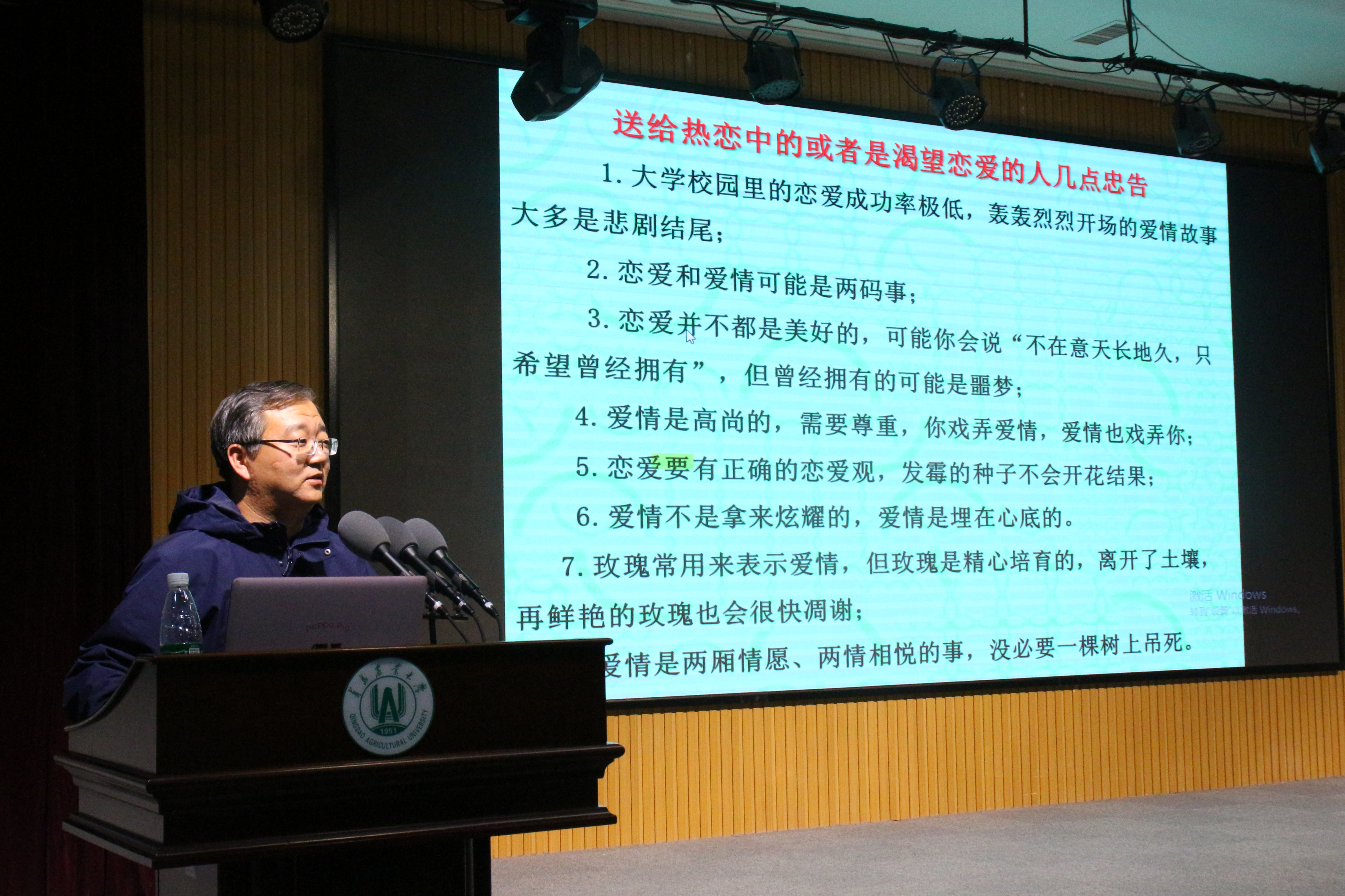 李军从十个方面向同学们阐述了如何读好大学。一是明确主责,勤奋学习;二担任员工干部的锻炼与收获;三是积极参与社团活动;四是懂得感恩,感激父母;五是树立正确的恋爱观;六是量力而行,合理消费;七是加强体育锻炼,健康生活;八是敬畏纪律,不触红线;九是平安无价,安全重于泰山;十是提高升学率和就业质量。