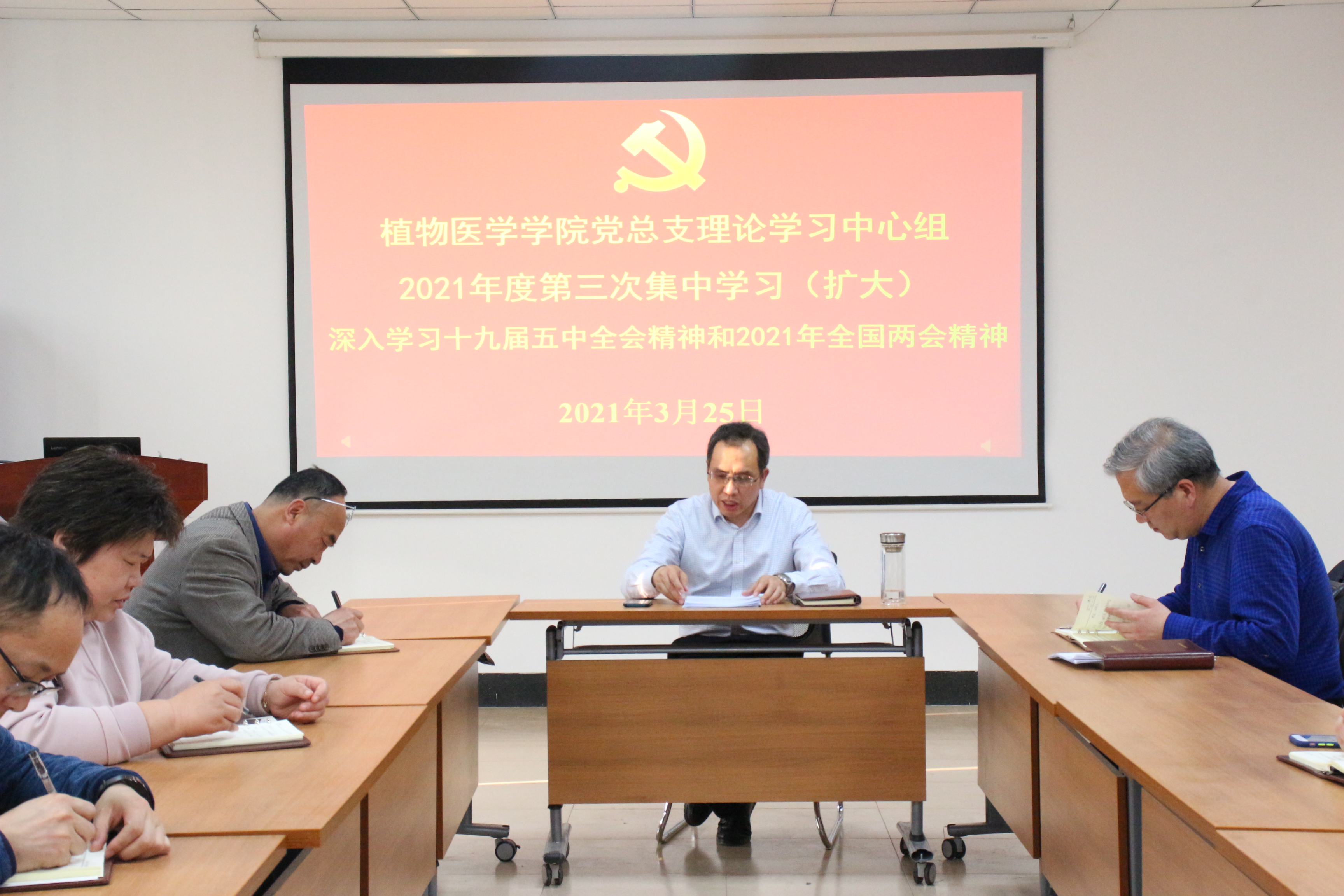 3月25日,公司党总支理论学习中心组于公司会议室开展2021年度第三次集中学习(扩大),深入学习十九届五中全会精神和2021年全国两会精神,会议由公司党总支书记韩强主持,公司党总支委员、各支部委员参加学习。
